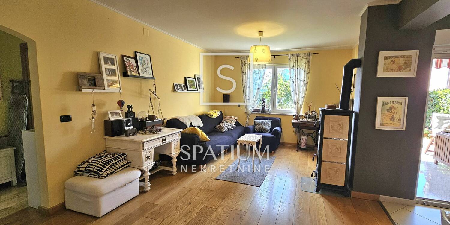 Potpuno namješten, opremljen klima uređajem, ima dimnjak i mogućnost grijanja na kruta goriva.