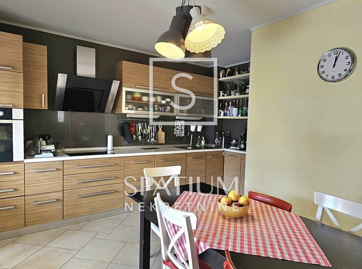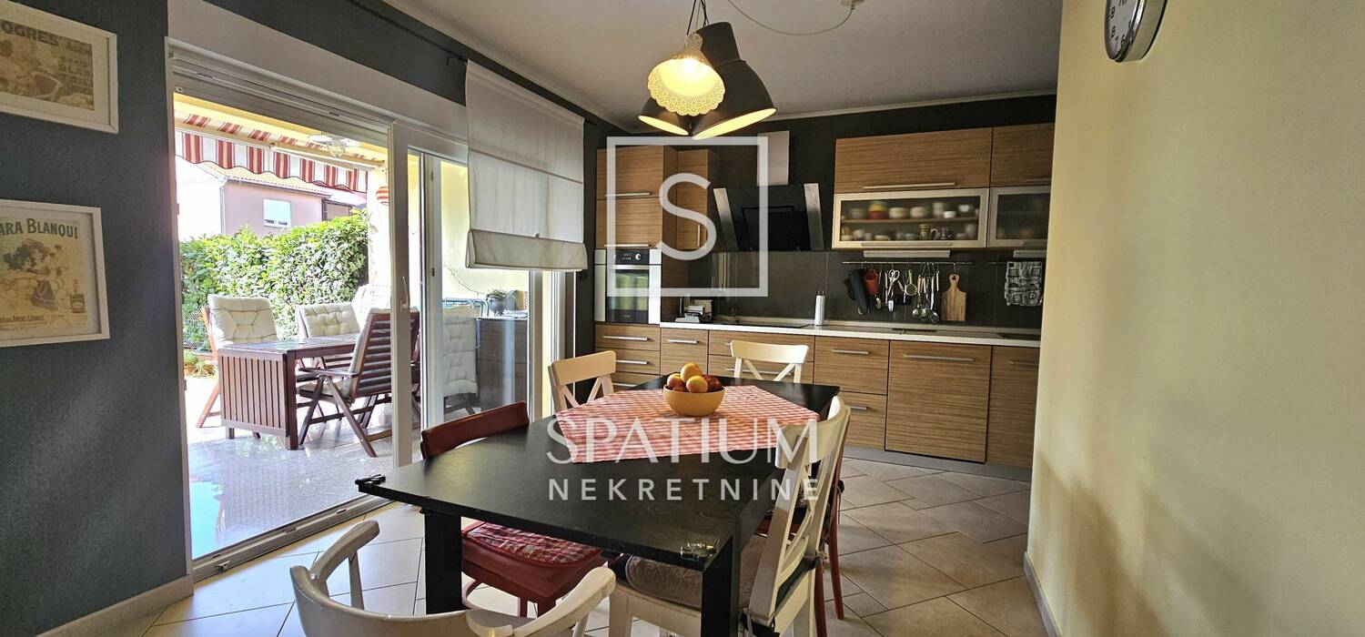 Iz dnevnih prostorija je izlaz na lođu koja je povezana sa lijepo uređenom okućnicom površine 121,99m2, unutar koje je vrt s mediteranskim biljem, roštilj i prostor za druženje. Stanu pripada parking.