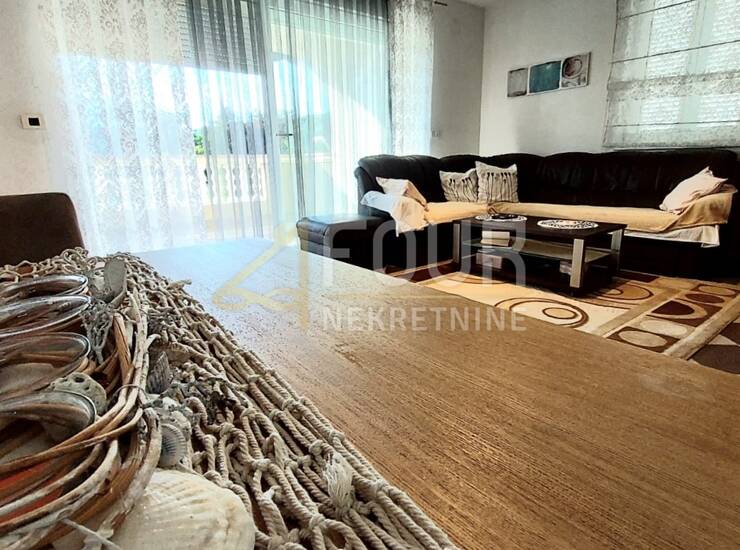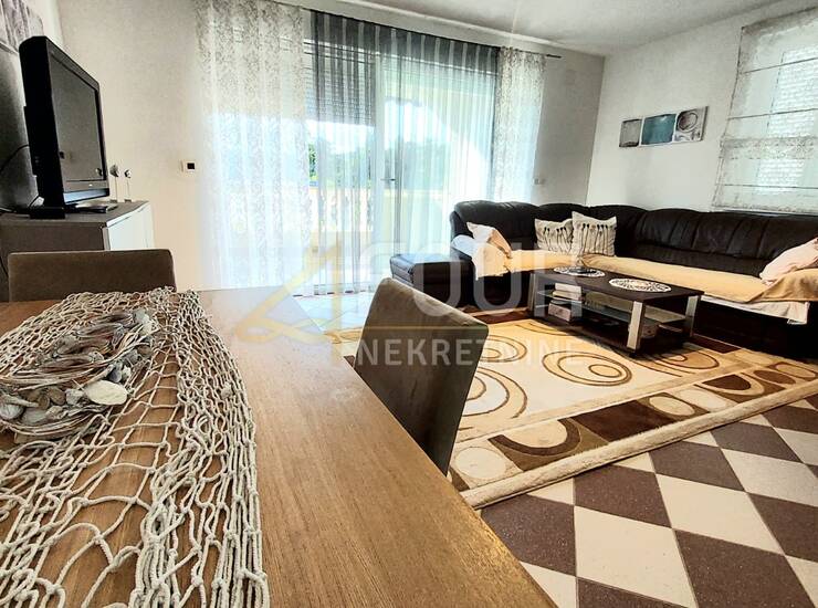 Prodaje se kompletno namješten i opremljen, s klima uređajem i kvalitetnom PVC/ALU stolarijom. Okućnica je ograđena što osigurava mir i privatnost, a unutar nje je osigurano jedno parking mjesto.