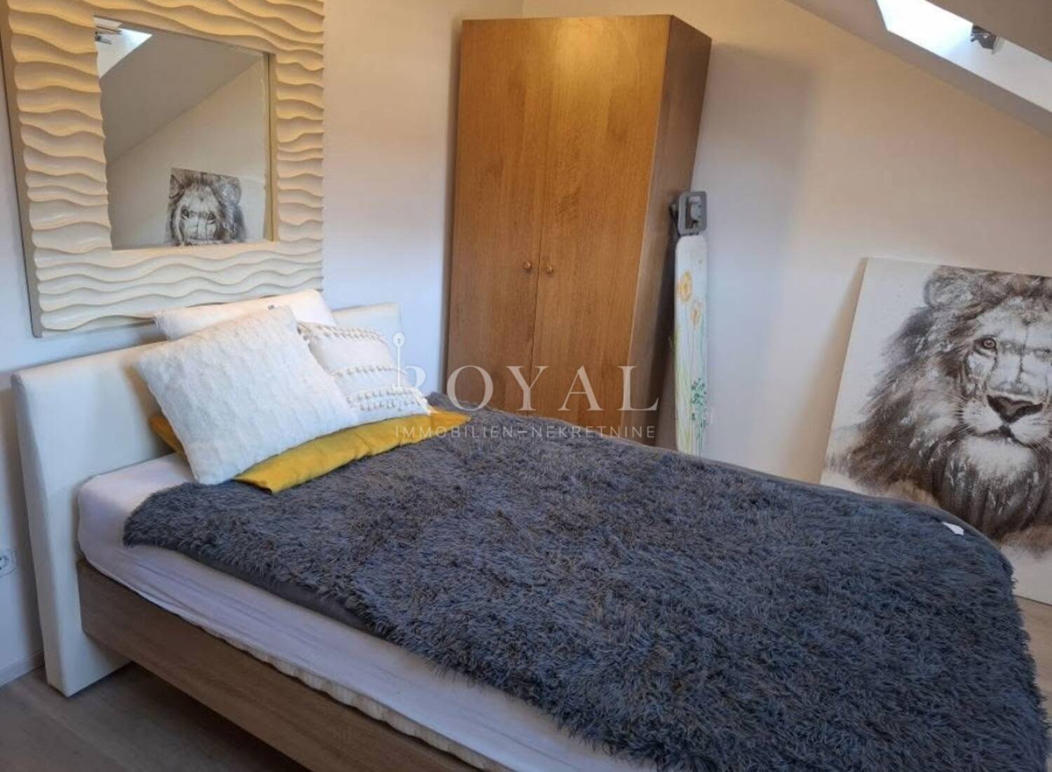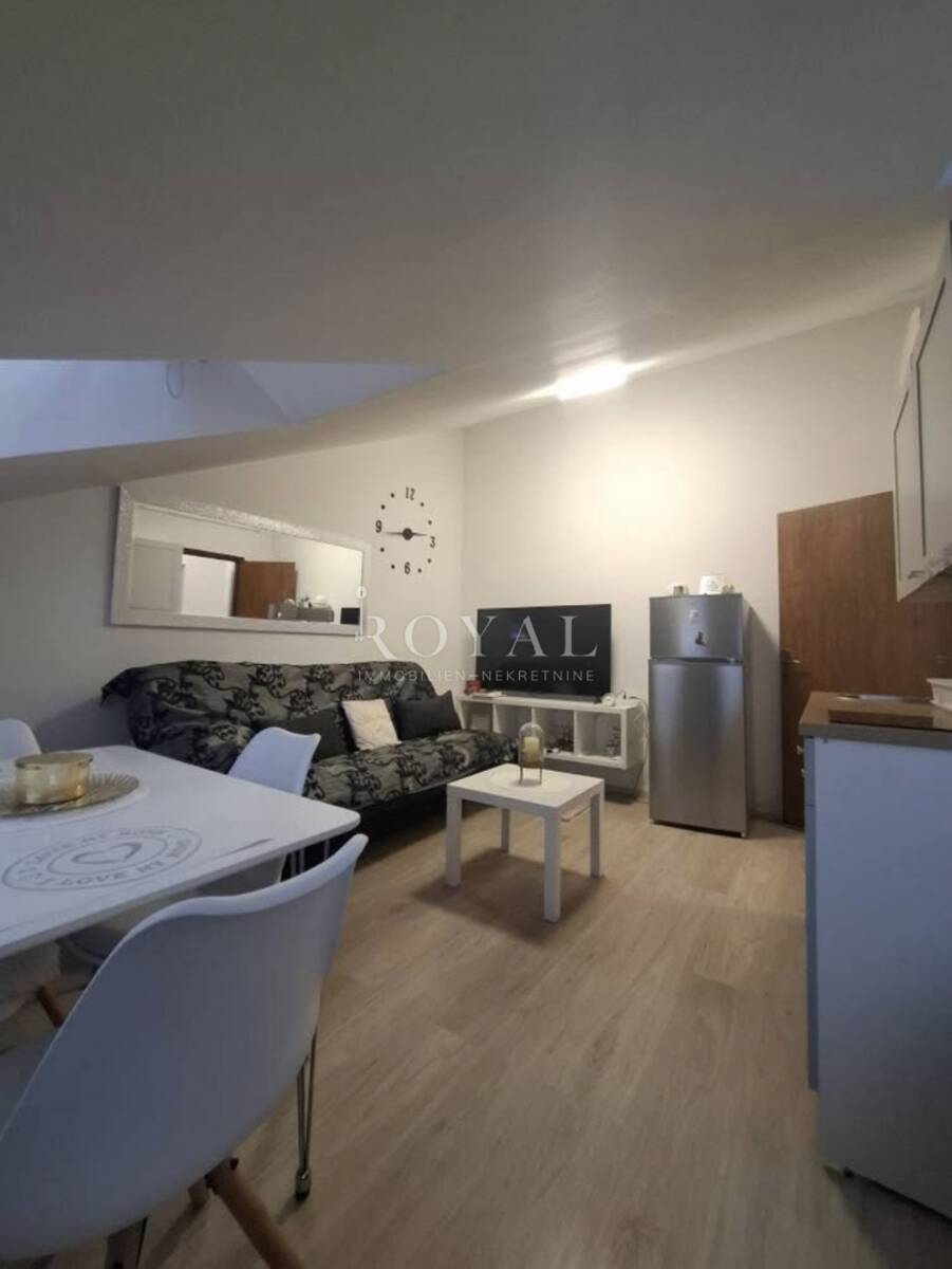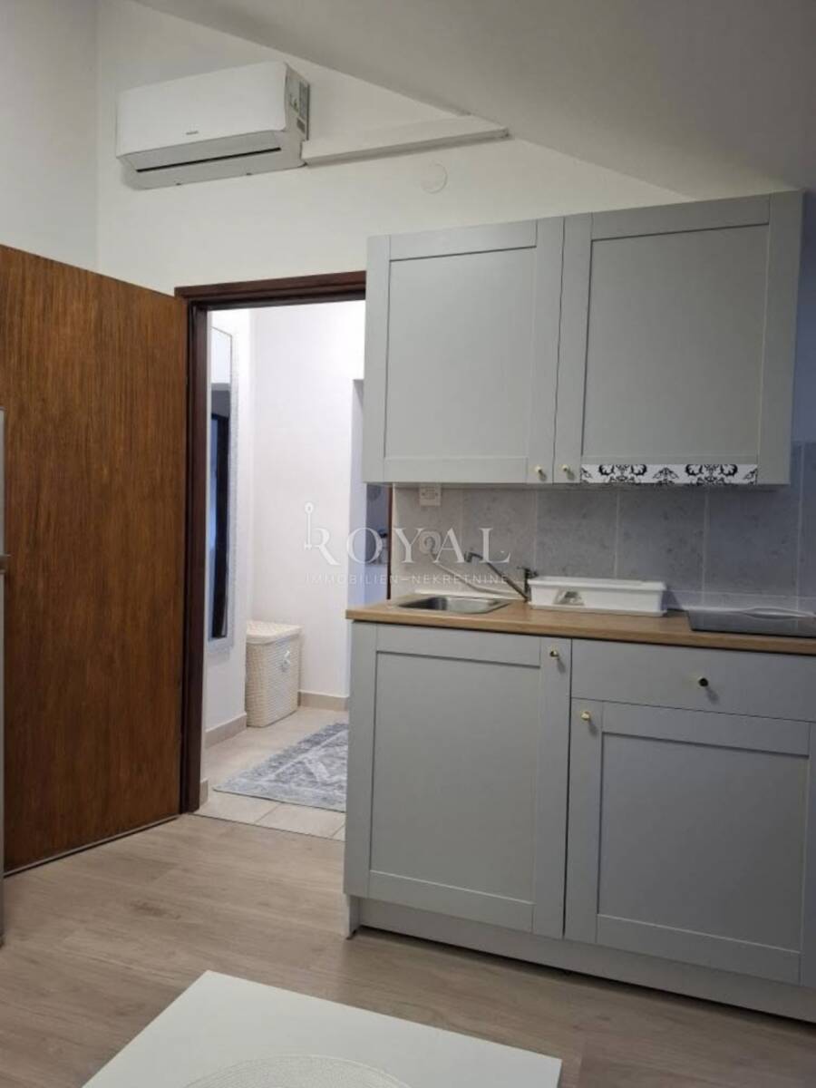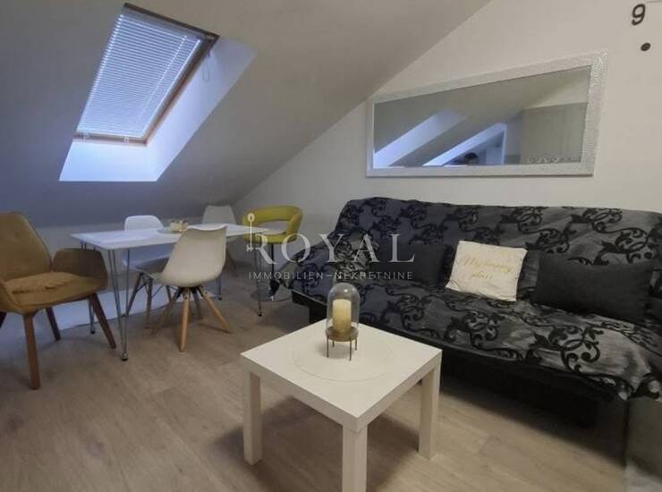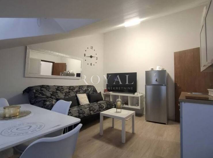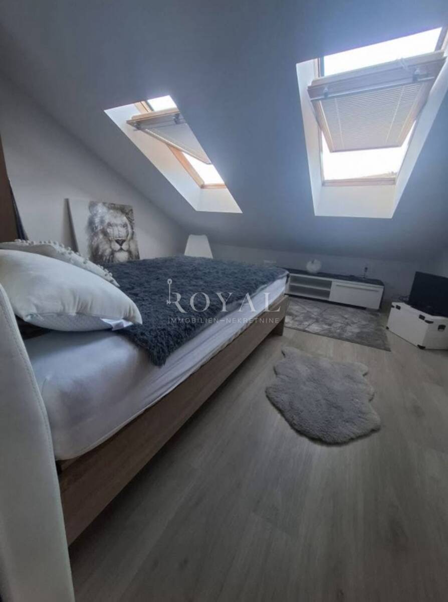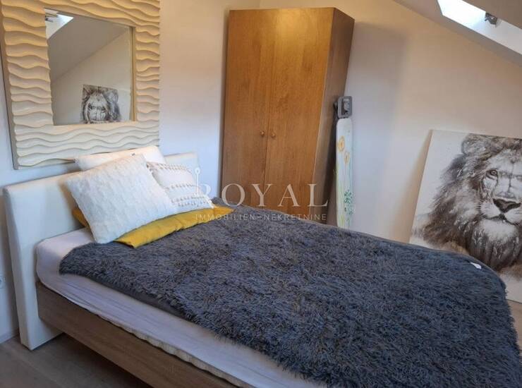 Zahvaljujući dobro organiziranom rasporedu, prostor djeluje prozračno i ugodno. Potkrovna pozicija daje dodatnu dozu intime i mira, što ovu nekretninu čini posebno privlačnom za one koji traže mirnu lokaciju u blizini mora.