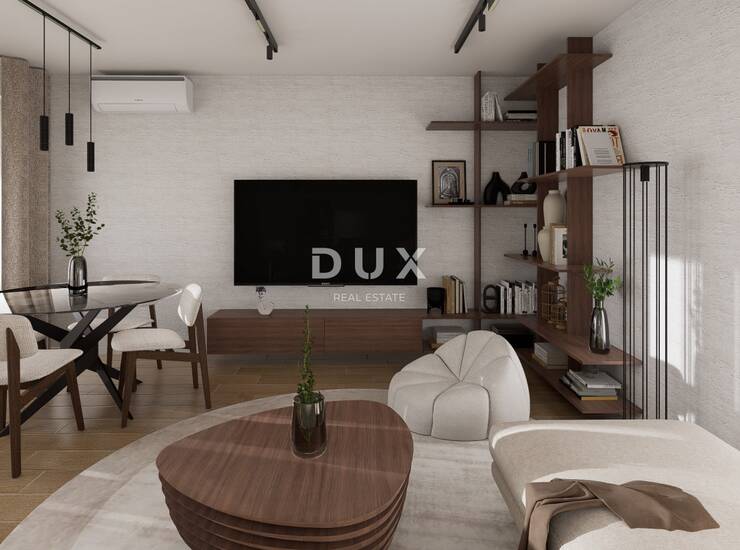 SLIKE i priloženi VIDEO na kojima se vidi namješteni stan, predstavljaju zamišljenu iluziju namještenja radi što boljeg predočenja kupcu o mogućem uređenju koji u dogovoru s arhitektom dizajnerom može biti baš takav.
