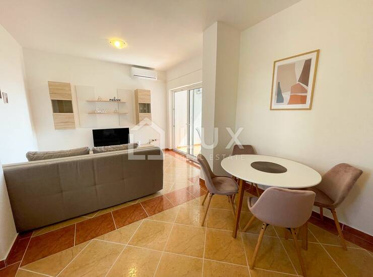 Zahvaljujući izvrsnom rasporedu prostorija i obilju prirodne svjetlosti, stan pruža ugodan i topao ugođaj tijekom cijelog dana. Udaljen je svega nekoliko minuta hoda od plaže, trgovina, restorana, kafića i javnog prijevoza.