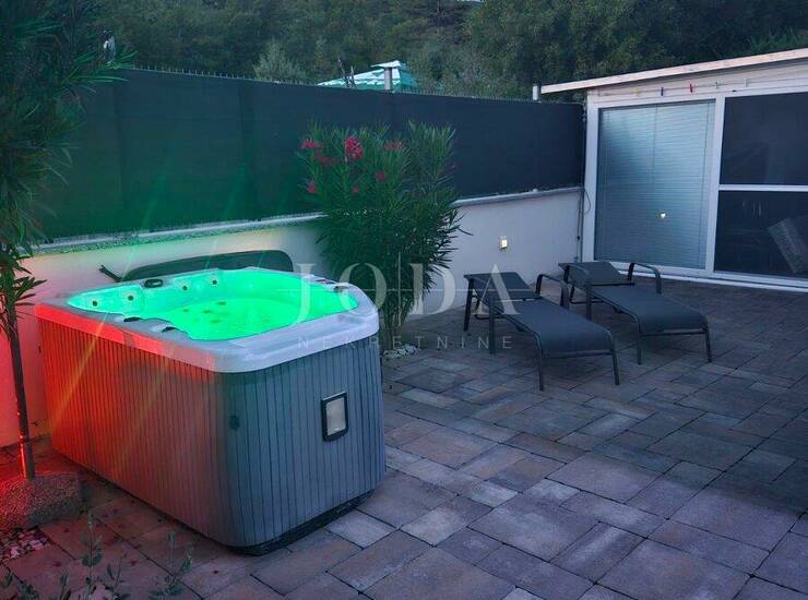 U sklopu uređene i ograđene okućnice nalazi se vanjski, montažni, smještajni objekt u kojem je uređena komforna spavaća soba, tako da je u naravi dvosobni stan sa dnevnim boravkom i terasom. U sklopu okućnice nalazi se i jacuzzi.