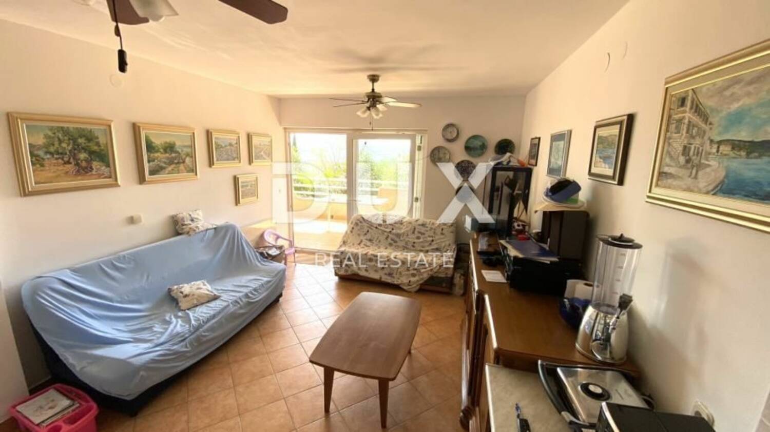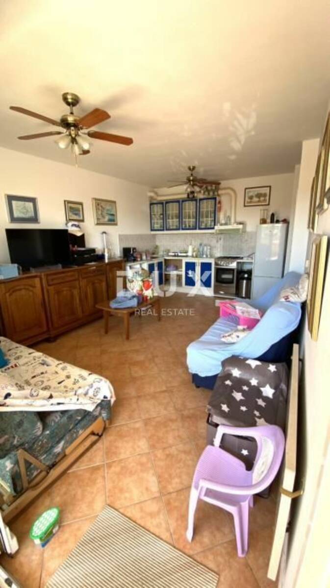 U naravi glavni apartman površine 50m2 koji se sastoji od od hodnika, kupaonice, spavaće sobe, kuhinje i blagovaonice te natkrivene terase i loggie sa prekrasnim pogledom na more.