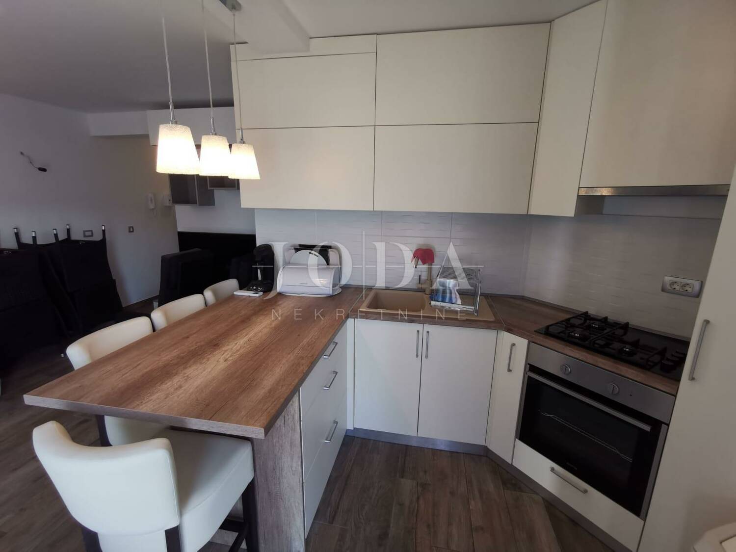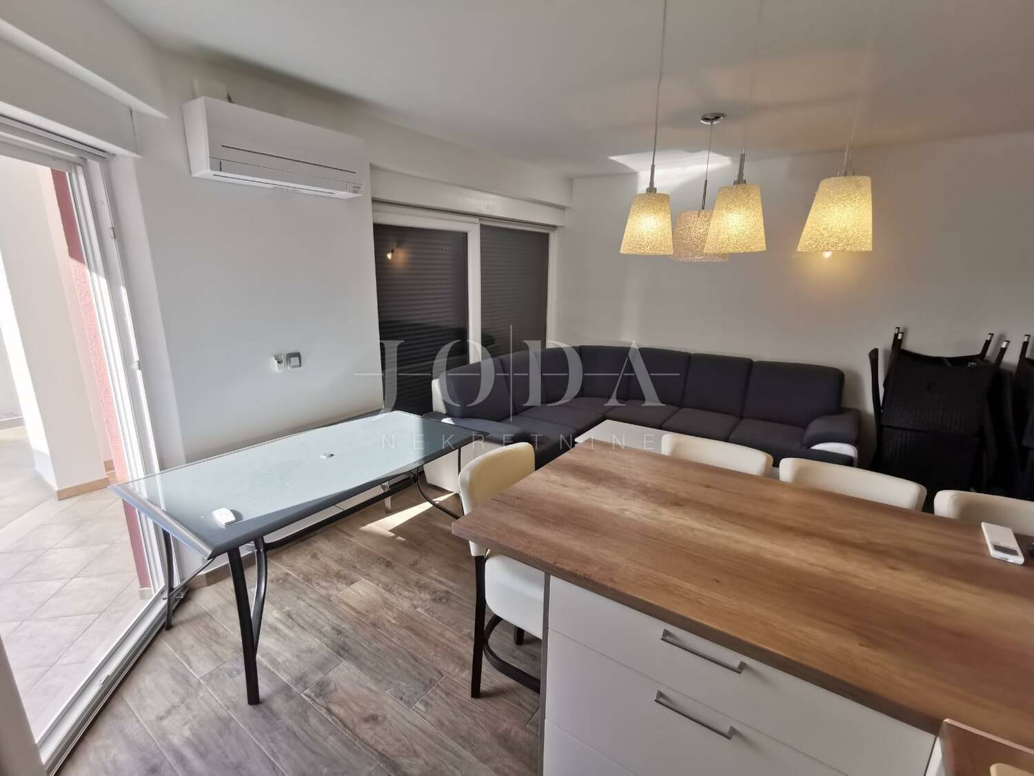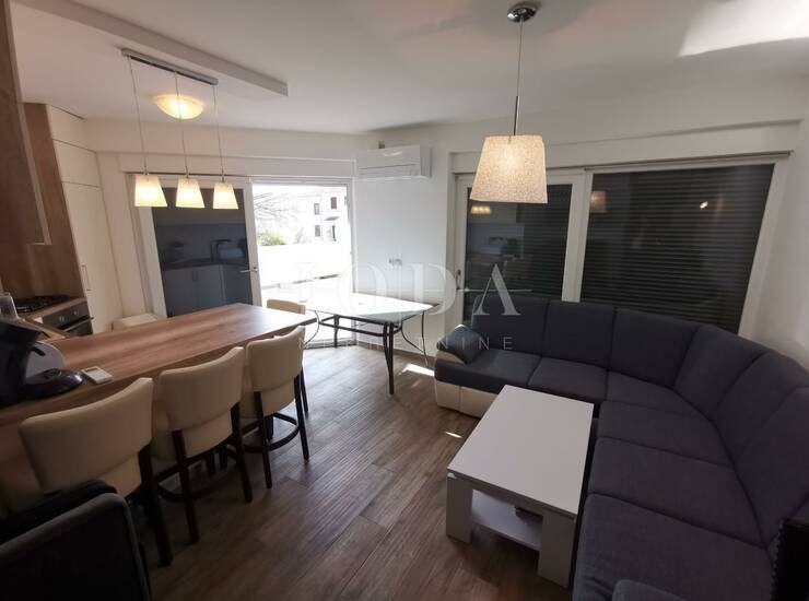 Prodajemo stan koji ima ukupnu neto korisnu površinu 58,38 m², a sastoji se od dnevnog boravka s kuhinjom, dvije spavaće sobe, kupaonice, hodnika i loggie. Dodatnu vrijednost čine natkriveni balkon površine 12 m², otvorena terasa od 40 m² te kućni vrt. Stan je u potpuosti namješten i klimatiziran i kao takav se i prodaje.