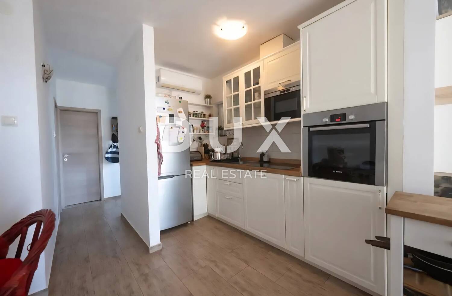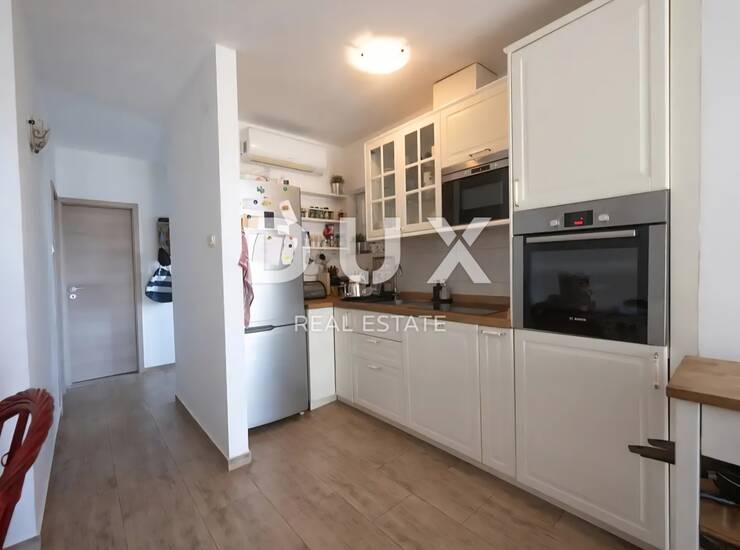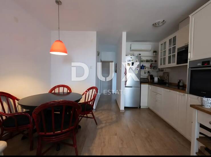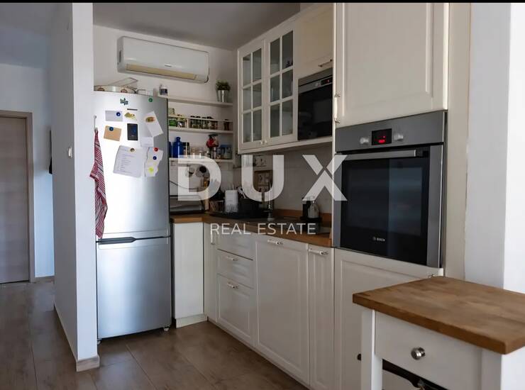 Moderna IKEA kuhinja s vrhunskim uređajima marke Bosch pirolitička pećnica, perilica posuđa, ugradbena mikrovalna, Samsung hladnjak i perilica rublja, kožna kutna garnitura u dnevnom boravku. Namještaj u spavaćim sobama rađen po mjeri, krevet na kat 140x200 + 80x200 u dječjoj sobi, klima uređaj. Vlasništvo uredno, etažirano.