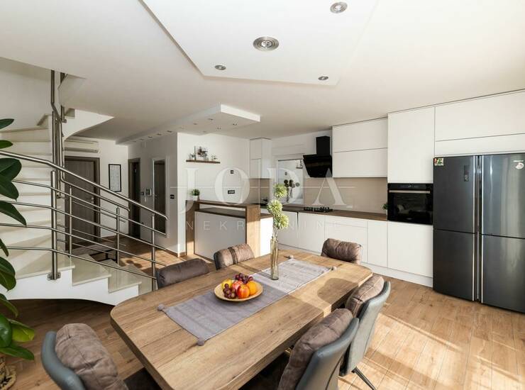 Prodaje se moderan i prostran dvoetažni stan u mirnom dijelu Jadranova, idealan za kupce koji traže udobnost, funkcionalnost i otvoren pogled na more. Stan se nalazi na drugom katu kvalitetne stambene zgrade te ima dvije velike terase s panoramskim pogledom na Kvarnerski zaljev. Zgrada ima video nadzor a ispred zgrade nalazi se zeleni pojas, područje na kojem nema gradnje, što prostoru daje dodatnu privatnost i mir.