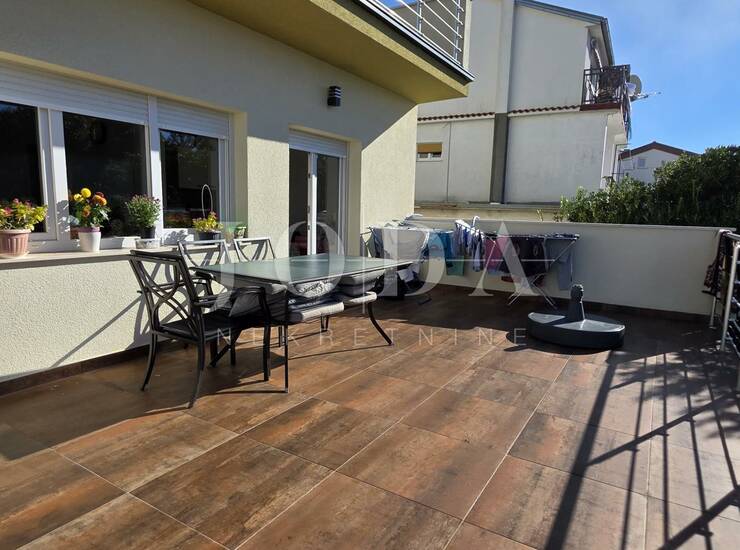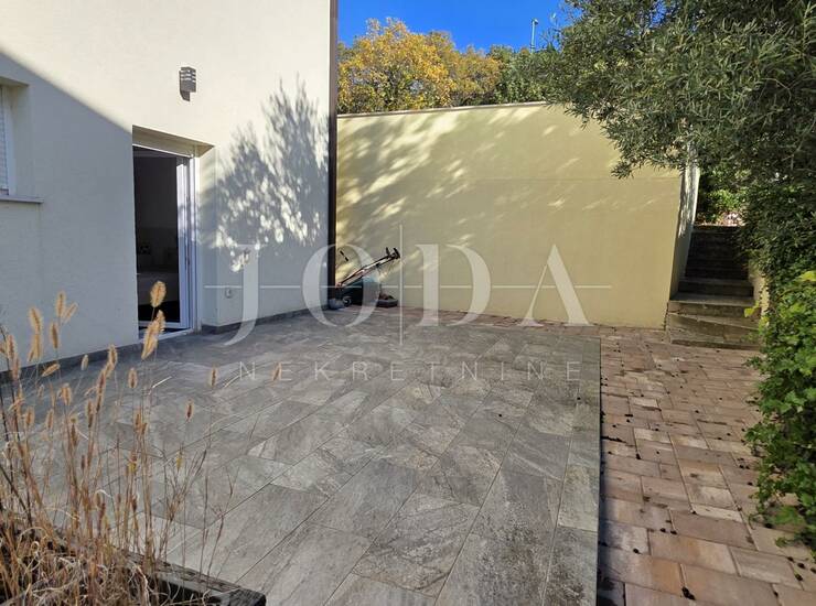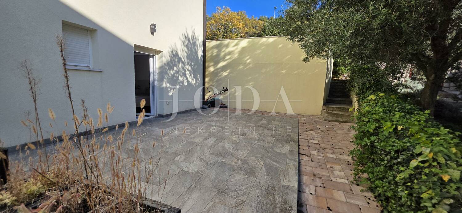 Stan se sastoji od hodnika, dnevnog boravka s kuhinjom i blagovaonicom, dvije spavaće sobe, tri moderno uređene kupaonice, balkona i terase koja nudi ugodan prostor za opuštanje. Dodatnu vrijednost daje vrt od 30 m² – savršen za druženja ili ljetne večeri na otvorenom.