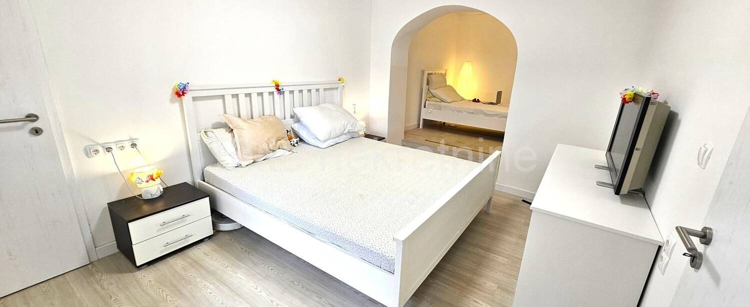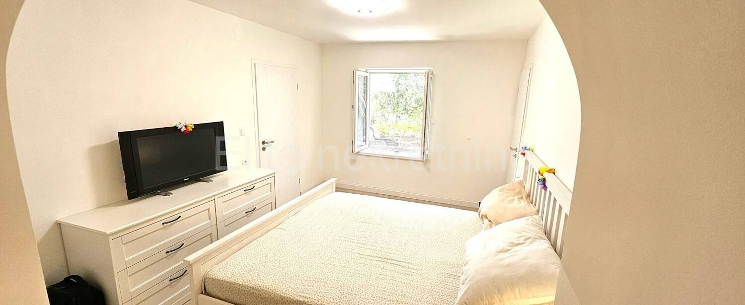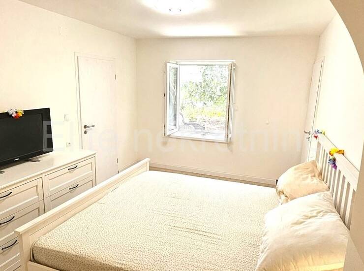 Stan kao i dvorište je kompletno namješten i spreman za useljenje/ljetovanje.Postoji i jednostavna mogućnost razdvajanja stana u dva manja apartmana.