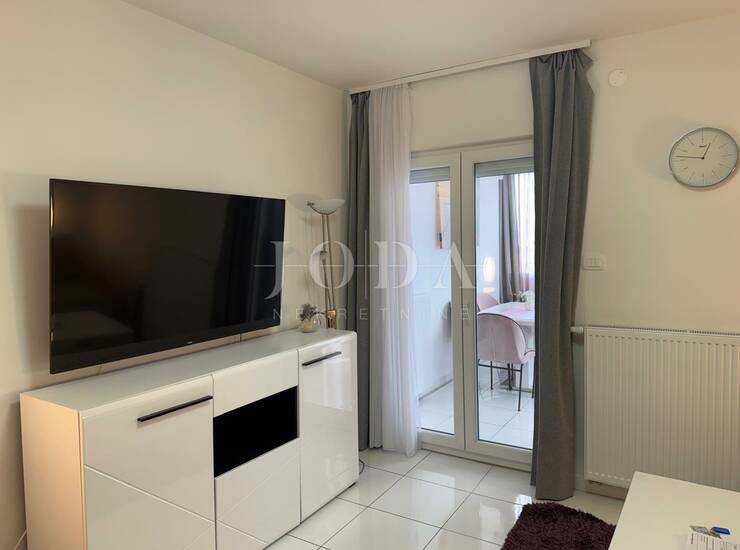 Grijanje je riješeno putem centralnog etažnog sustava na struju, a dodatnu udobnost pruža klima uređaj.