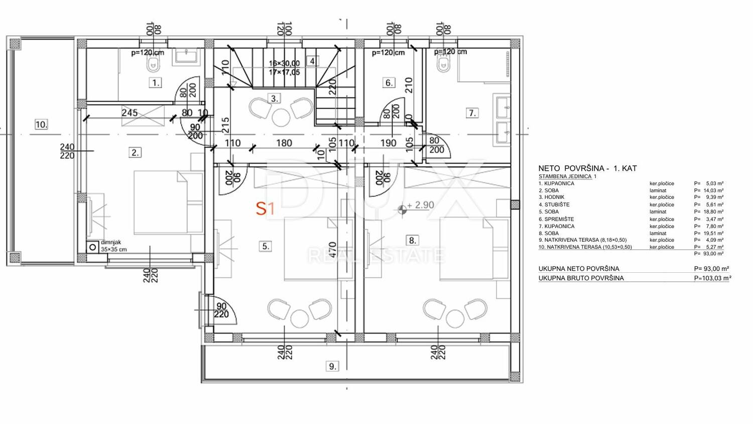 Bruto površina: cca 200 m² (razvedeni tlocrt: 14,60 x 9,80 m)