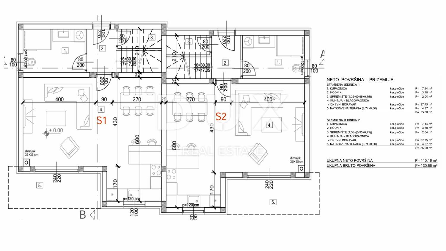 Na prodaju je građevinsko zemljište s kompletnom projektno-tehničkom dokumentacijom i važećom građevinskom dozvolom za izgradnju moderne dvojne kuće (P+1) u mirnom dijelu Crikvenice.