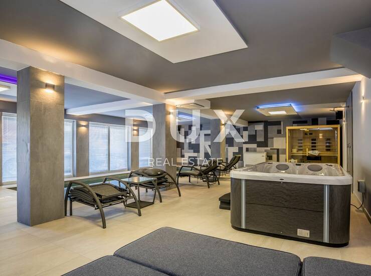U prizemlju se nalazi welness s 'indoor' bazenom, jacuzzijem, saunom i kupatilom. Prostoran i dostojan većih objekata!
