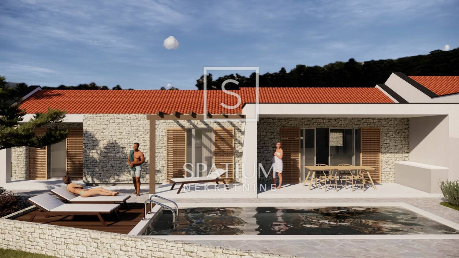 GOSTINJAC, ekskluzivno kod nas, u ponudu smo dobili dvojnu prizemnicu u novogradnji s bazenom na mirnom dijelu otoka.