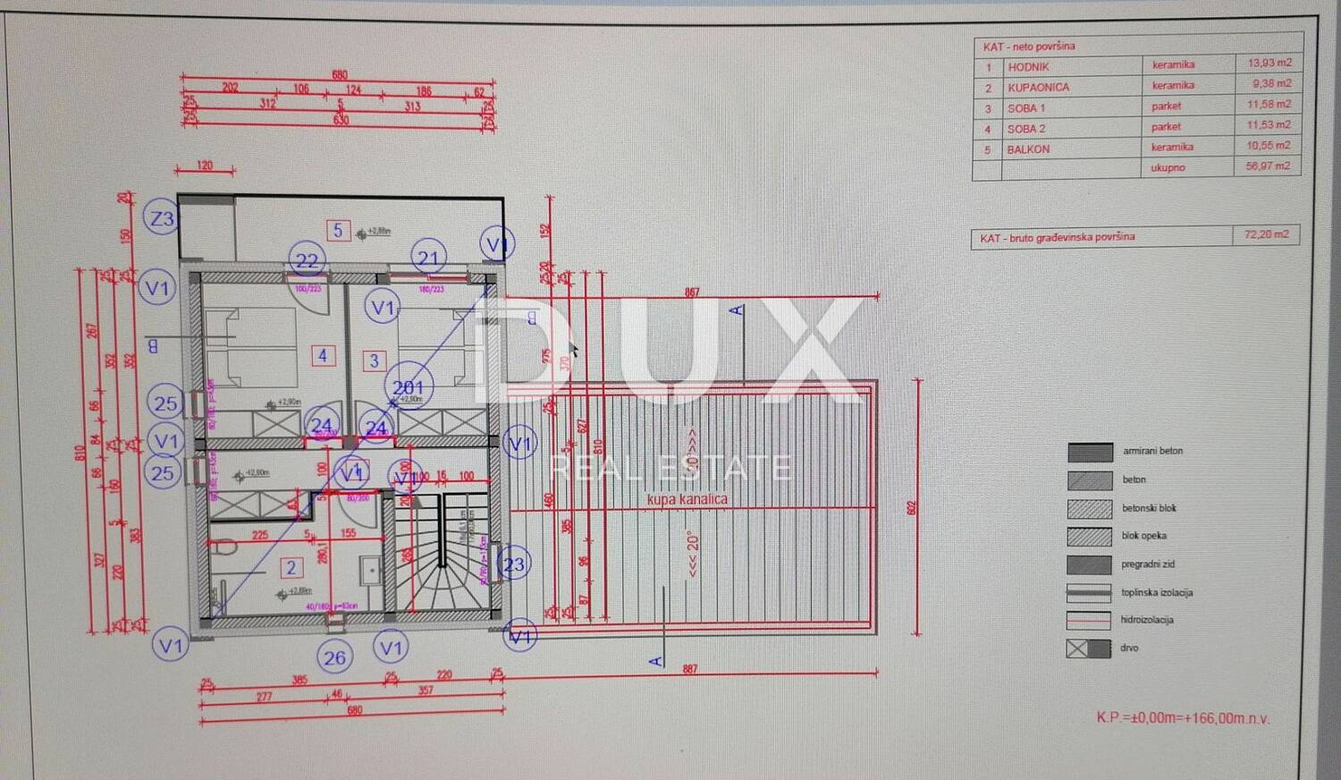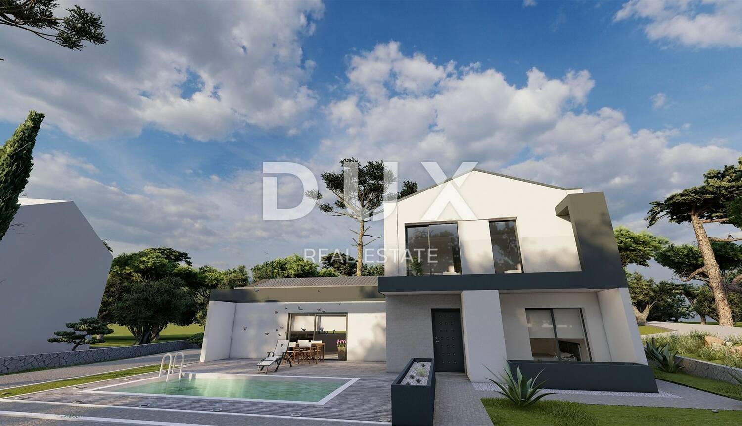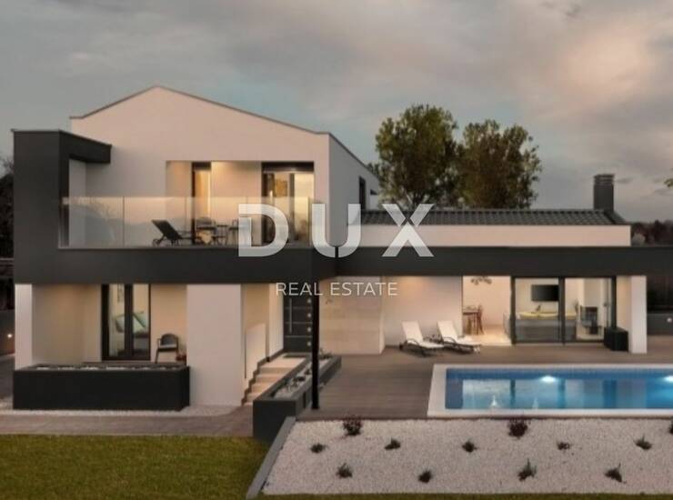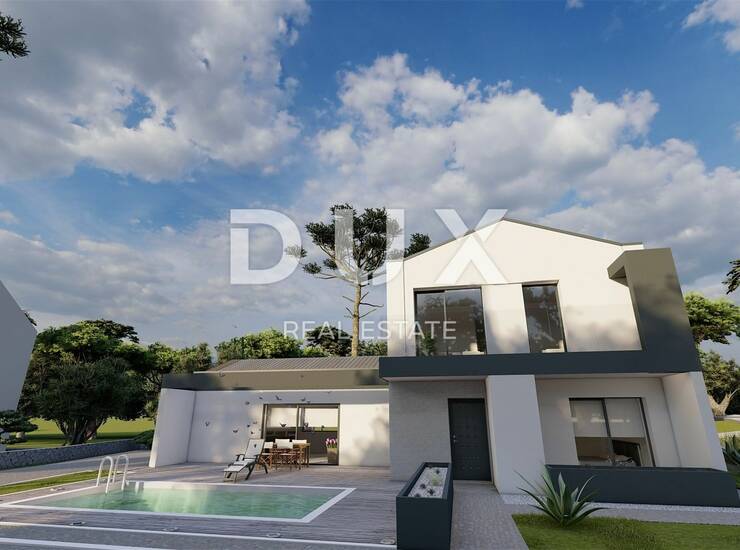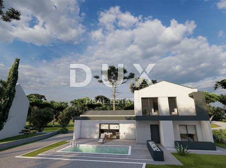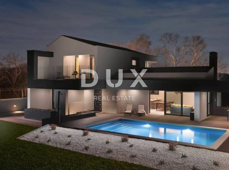 Ova moderna novogradnja nalazi se na mirnoj lokaciji. Ima oko 135 m2 i dvije etaže. U prizemlju objekta nalazi se hodnik, spremište, kupaonica, spavaća soba s izlazom na loggiu, kuhinja s blagovaonicom i dnevnim boravkom koji imaju izlaz na lijepo uređenu natkrivenu terasu i okućnicu na kojoj se nalazi bazen. Na katu su se smjestili hodnik s garderobom, kupaonica, dvije spavaće sobe s izlazom na balkon s lijepim pogledom. Na okućnici ima predviđena dva parkirna mjesta.