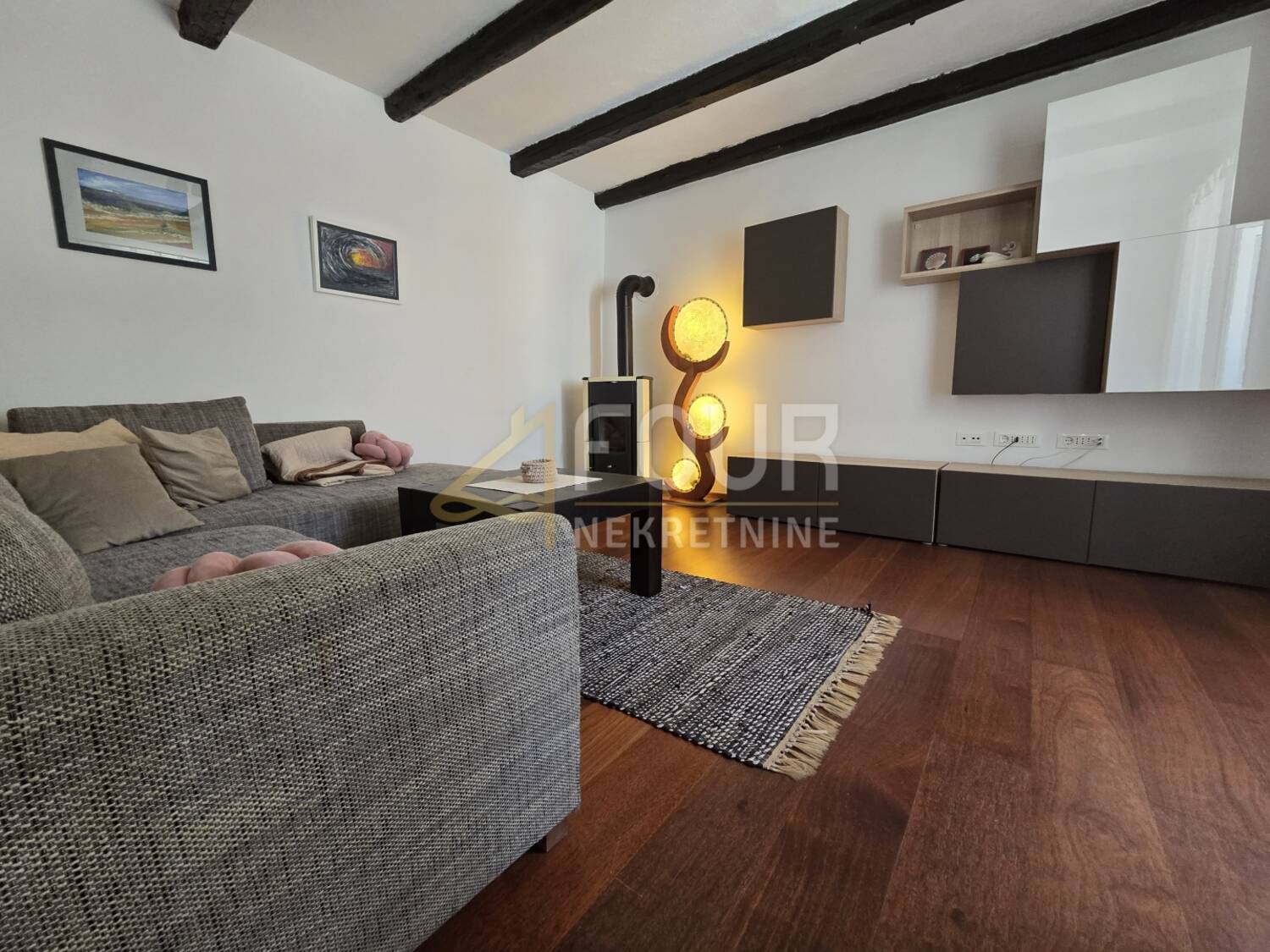 U prizemlju se nalazi kuhinja s blagovaonom, dnevni boravak, kupaonica te ugodan prostor za druženje, dok se na katu nalaze tri spavaće sobe. Grijanje je riješeno peći na drva i podnim grijanjem u kuhinji i kupaonici, a za dodatni užitak tu je i jacuzzi u dvorištu.