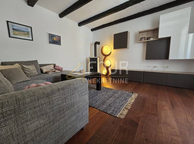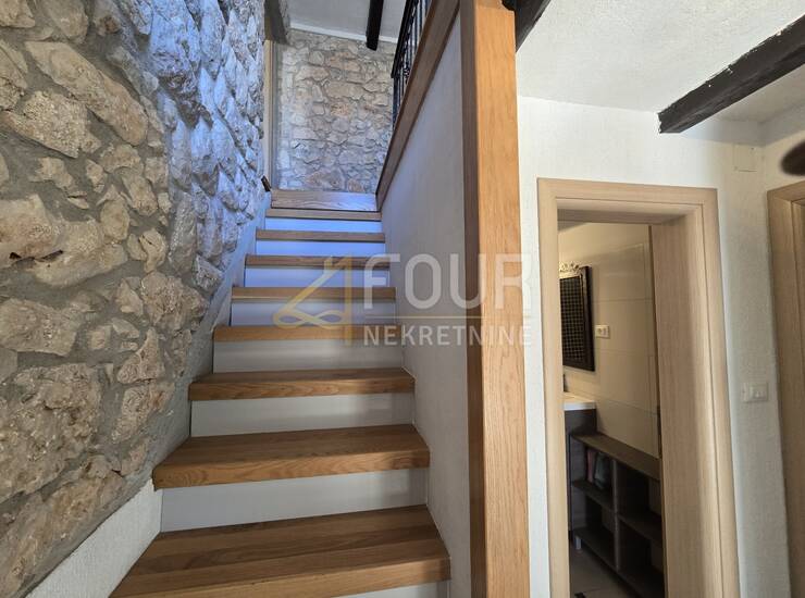 Prodaje se prekrasna dvojna kamena kuća na mirnoj lokaciji u mjestu Kras na otoku Krku. Kuća je potpuno adaptirana, kategorizirana i prodaje se s namještajem uključenim u cijenu. Prostire se na dvije etaže ukupne površine 202 m2, a smještena je na parceli od 277 m2 s uređenom okućnicom od 176 m2.