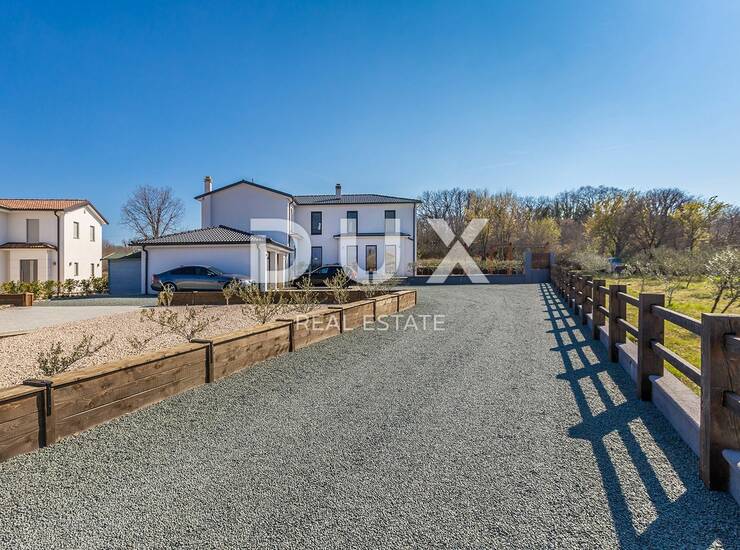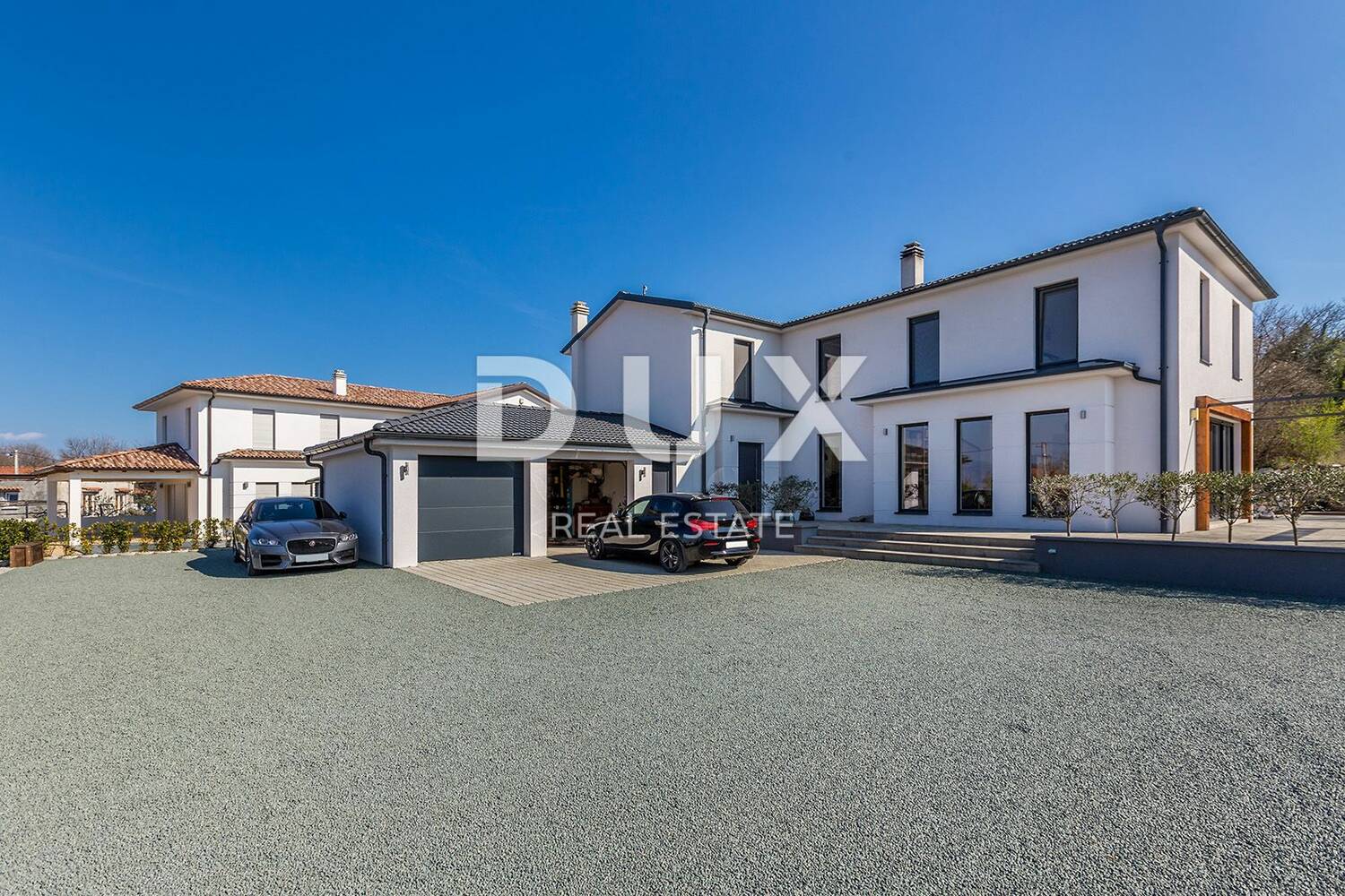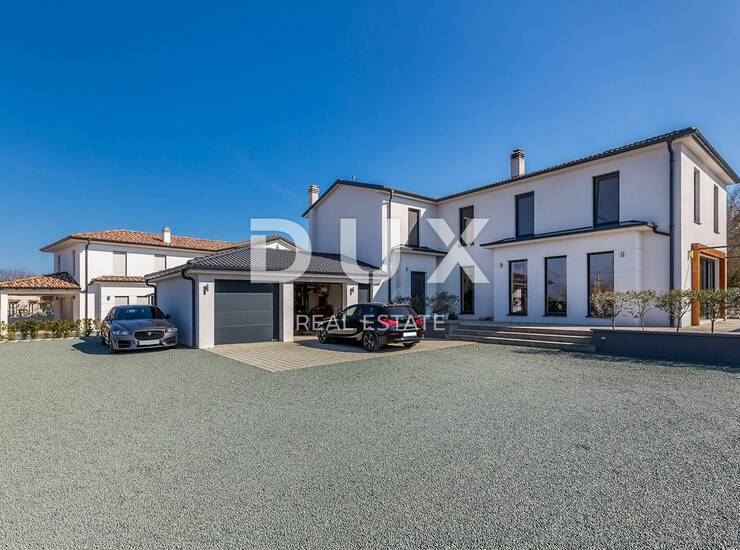 Sastoji se od dvije etaže. U prizemlju nalazi se veliki integrirani prostor dnevnog boravka, kuhinje i blagavaone, s izlazom na terasu i sunčalište pokraj bazena. Prizemlje također sadrži WC, vešeraj i radnu sobu, koja se po potrebi može pretvoriti u spavaću sobu. Kat je povezan unutrašnjim stepeništem i dolazi se u veliko predsoblje koje ima funkciju drugog dnevnog boravka. Na katu se nalazi velika spavaća soba s vlastitom kupaonicom i velikom walk in garderobom. Na katu se nalaze još dvije spavaće sobe, koje su trenutno spojene i jedna je pretvorena u sobu za zabavu, te velika kupaonica. Kuća je dizajnirana u irskom stilu, gdje dnevni prostor ima puno svjetlosti. Kuća je potpuno namještena i opremljena, luksuznim, kvalitetnim i funkcionalnim, a opet nenametljivom namještajem. U prostoru dnevnog boravka na podovim se nalazi "seljački pod", kvalitetan hrastov parket, stolarija je kvalitetni PVC. Da ovako velika kuća dobije toplinu doma, maštovitom detaljima pobrinuli su se sadašnji vlasnici. Ova vila nije građena kao kuća za odmor, nego je dizajnirana za boravak tijekom cijele godine. Ima centralno grijanje na naftu i čak šest kvalitetnih klima uređaja. Najjači adut ove vile svakako je okućnica od 1250 m2 u potpunosti uređenih, s velikim sunčalištem i terasom s grijanim bazena. Uz kuću nalazi se garaža s mjestom za dva automobila, dok na okućnici ima j