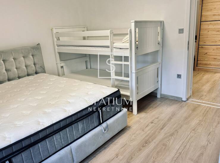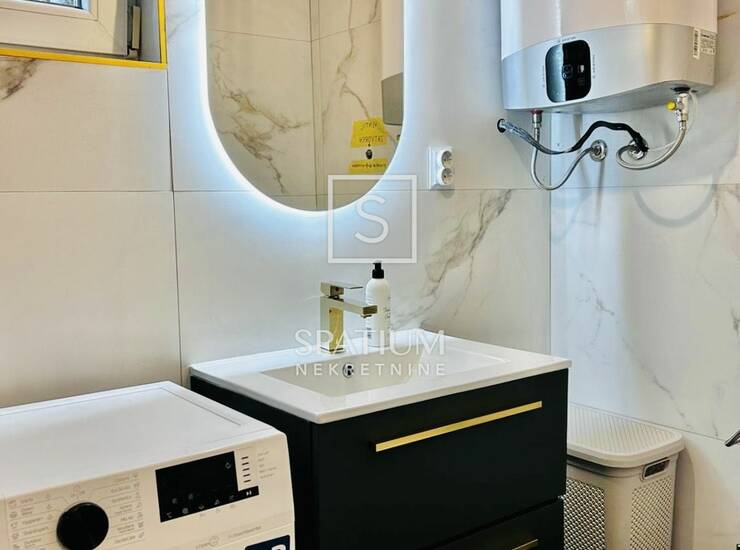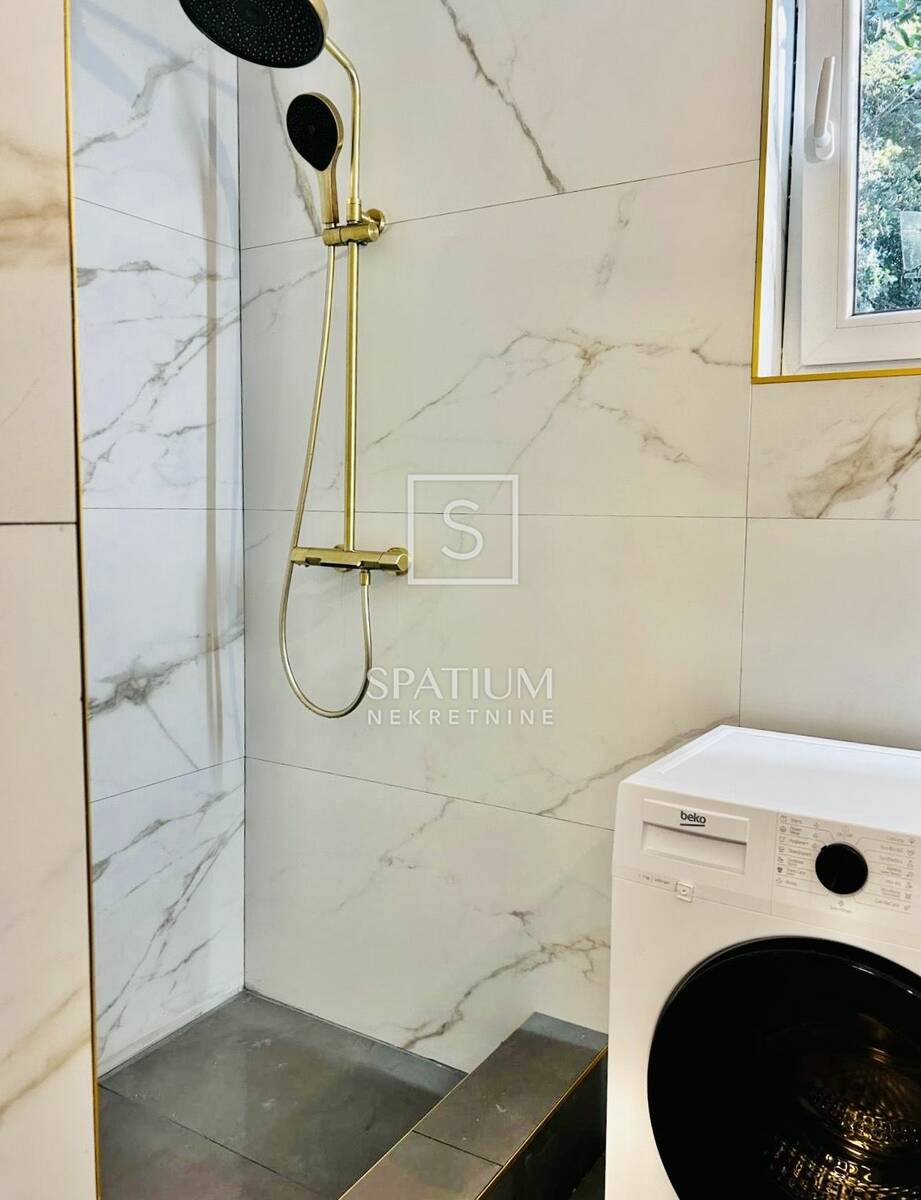 Kuća se sastoji od dnevnog boravka, odvojene kuhinje s blagovaonicom, prostrane spavaće sobe i potpuno uređene kupaonice. Unutrašnjost je u cijelosti renovirana – postavljene su nove podne obloge, izmijenjene instalacije, ugrađena PVC stolarija i izvedena nova fasada. U tijeku je uređenje okućnice, a po dogovoru je moguće urediti i krov. Budući vlasnik ima pravo nadograditi još jedan kat, što ovoj nekretnini daje dodatni potencijal.