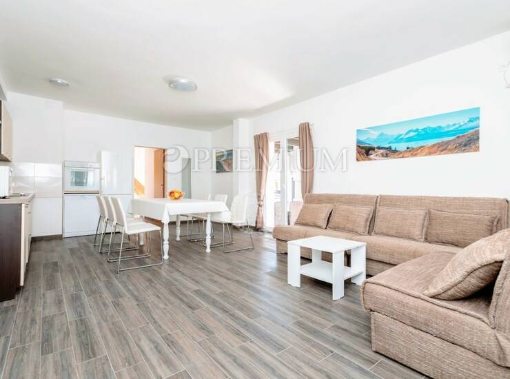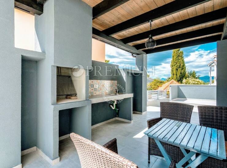 Prizemlje se sastoji od open-space kuhinje s blagovaonom, prostranog dnevnog boravka, gostinjskog toaleta, jedne spavaće sobe i kupaonice. Unutarnje stepenište vodi na kat koji čine dvije komotne spavaće sobe, velika kupaonica te manja kuhinja s izlazom na terasu s koje se pruža prekrasan pogled na more.