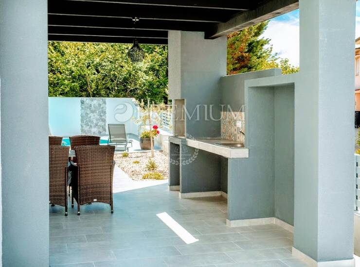 Na okućnici se nalazi bazen sa sunčalištem, idealan za ljetno uživanje, te ljetna kuhinja koja pruža dodatnu vrijednost i prostor za druženje. Osigurana su i dva parkirna mjesta.