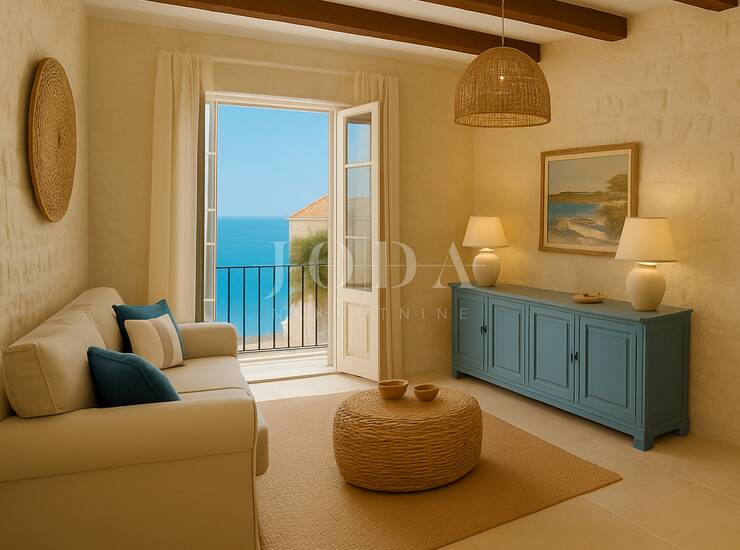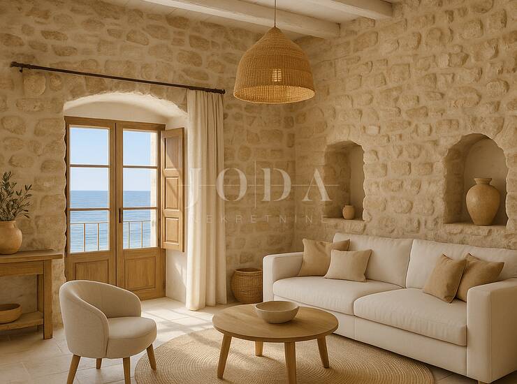 Udaljena samo 10 metara od mora, prodaje se kuća u nizu. Trenutno se prizemlje sastoji od hodnika, kuhinje, kupaone, dnevnog boravka te jedne spavaće sobe.