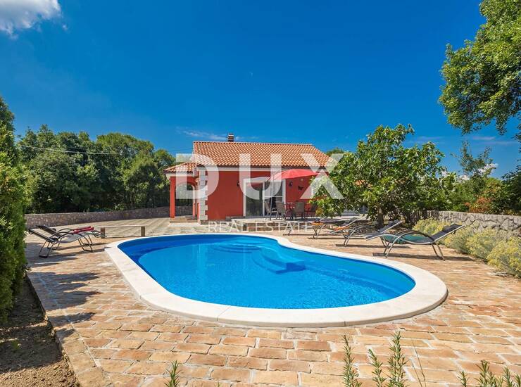 OTOK KRK, DOBRINJ - Samostojeća šarmantna kuća s grijanim bazenom, studio apartmanom i aktivnim turističkim najmom u mirnom dijelu otoka!
