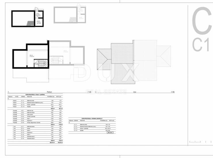 Prodaje se projekt dvojne kuće ”C” svaka sa svojim vlastitim bazenom, okućnicom i parkiralištem za dva automobila po svakoj, koja je razvedena na prizemlje i kat.