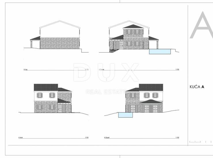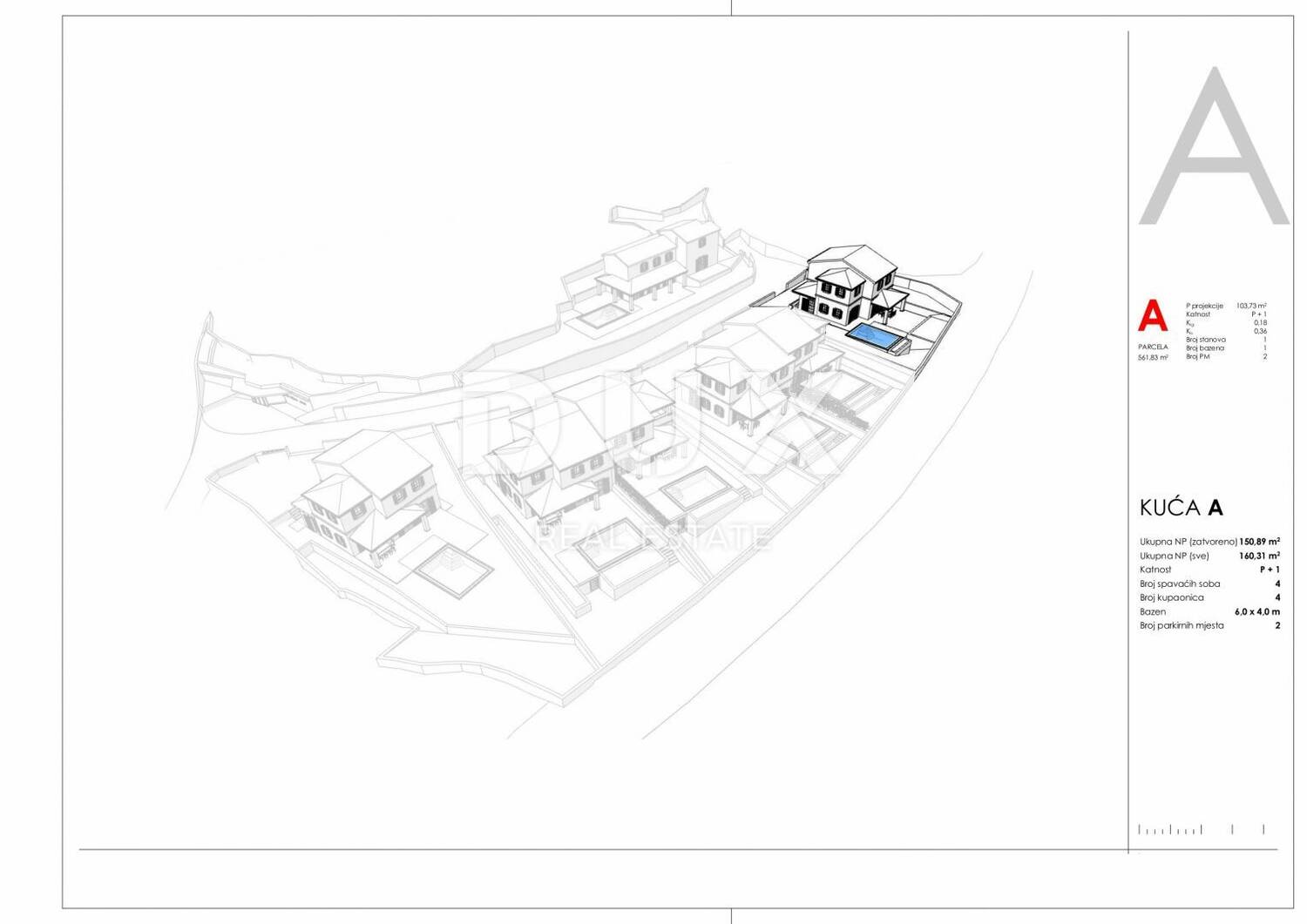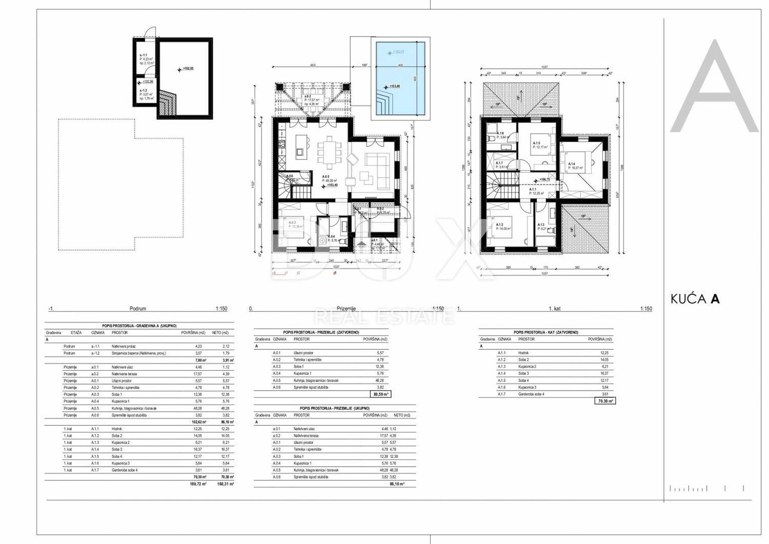 Prodaje se projekt samostojeće kuće ”A” s bazenom dvorištem koja je razvedena na prizemlje i kat.