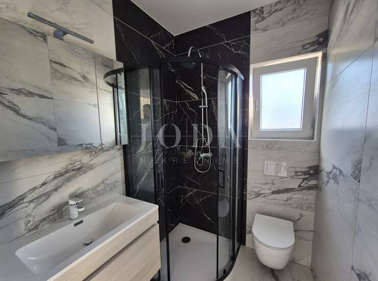 Apartmani se nalaze u stambenoj zgradi s ukupno devet apartmana, po tri na svakom ulazu. Ugrađene su kvalitetne keramičke pločice i sanitarije, PVC stolarija i inverter-klima uređaja za grijanje i hlađenje. Apartman je spreman za korištenje.