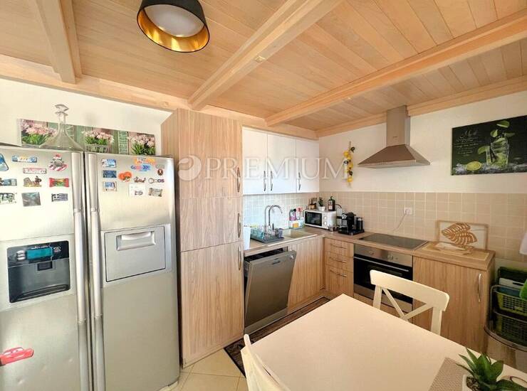 Raspored prostorija obuhvaća ulazni prostor, kupaonicu, tri spavaće sobe, kuhinju s blagovaonicom i dnevni boravak s izlazom na loggiu. S loggie se pruža prekrasan, otvoreni pogled na more. Na galeriji su smještene dvije dječje sobe, čime je prostor funkcionalno iskorišten i prilagođen obiteljskom životu.