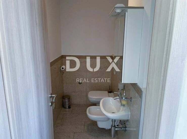 Apartman se sastoji od kuhinje sa blagavaonicom i dnevnim boravkom, gostinjskog WC-a, dvije spavaće sobe, kupaonice i nenatkrivene terase s prekrasnim pogledom na more i prirodu. Apartman se prodaje kompletno namješten te svaka spavaća soba i dnevni boravak imaju vlastitu klimu, kupaonica ima električno grijanje. Na okućnici zgrade nalazi se i jedno parkirno mjesto koje pripada apartmanu.