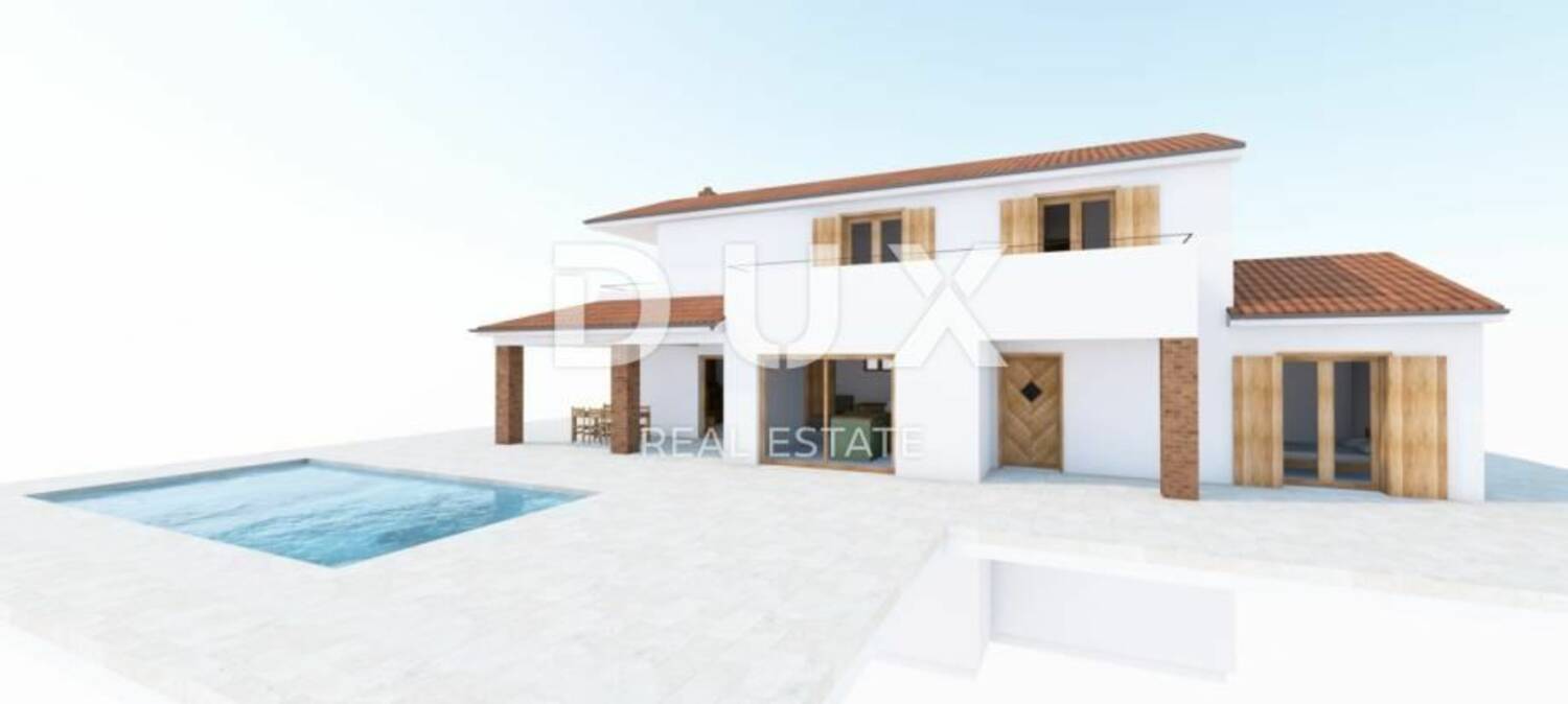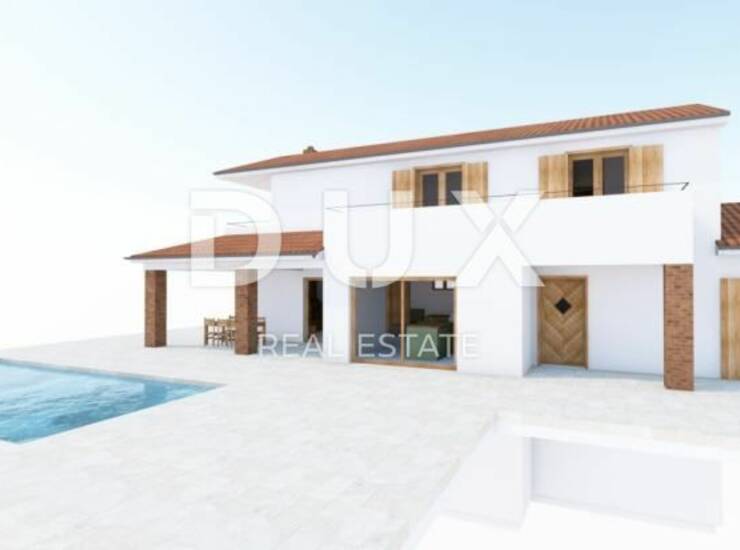 OTOK KRK, KRAS - Zemljište 2207 m2, projekt vile s bazenom s započetom gradnjom
