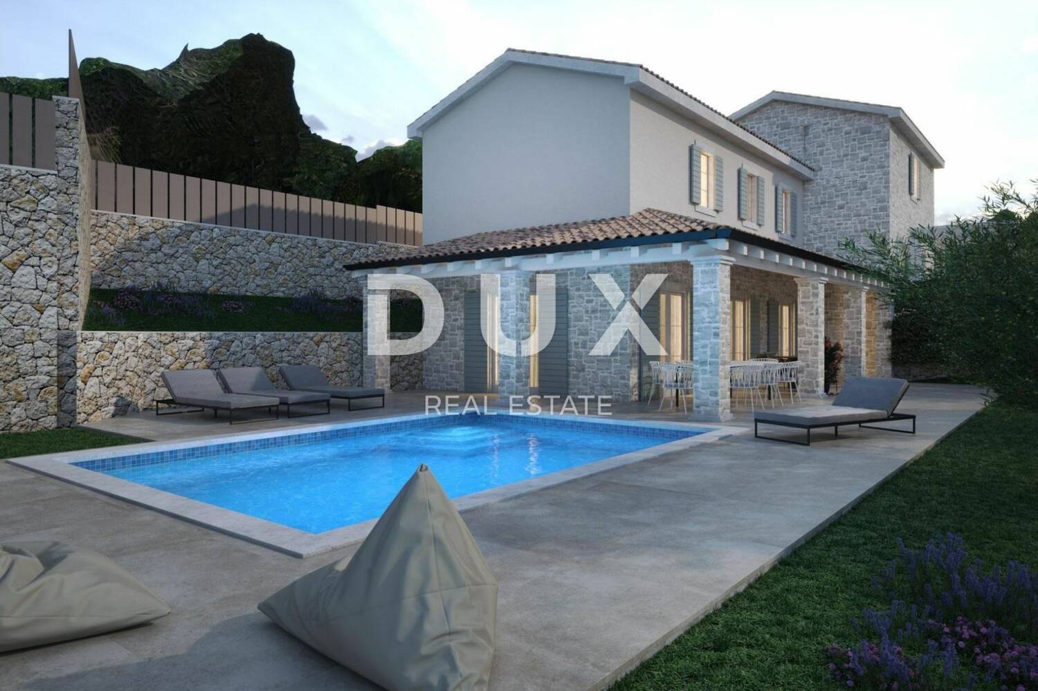 OTOK KRK, TRIBULJE - građevinsko zemljište s projektom za obiteljsku kuću s bazenom i pomoćnim objektom