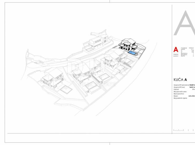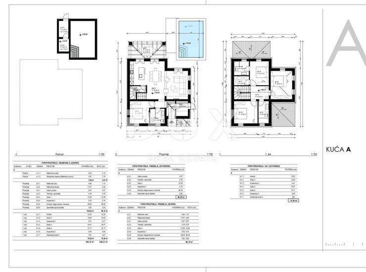 Prodaje se građevinsko zemljište površine 561,47m2. Projekt za izgradnju samostojeće kuće ”A” s bazenom dvorištem koja je razvedena na prizemlje i kat.