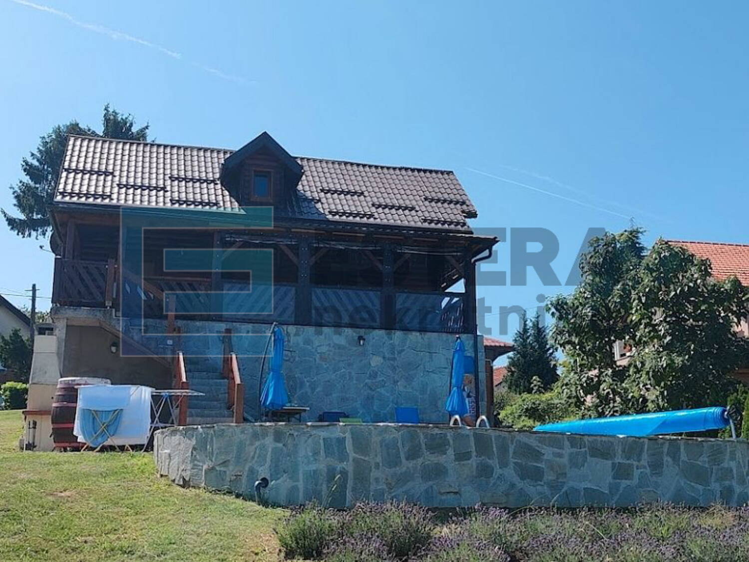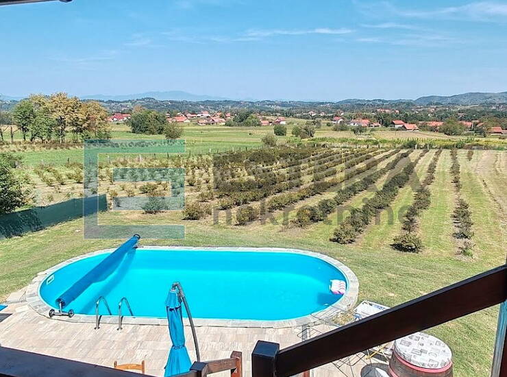 PRODAJA drvena kuća, Pustodol, bazen, plantaža borovnica, 5430 m2