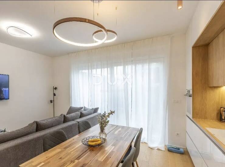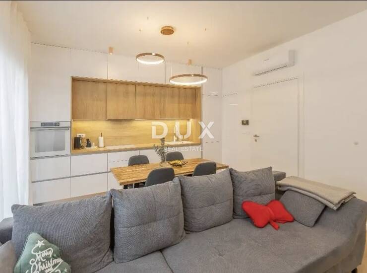 Stan je građen armirano-betonskom konstrukcijom te opremljen vrhunskom opremom: dizalica topline Vaillant, podno grijanje s termostatima u svim prostorijama, električne rolete, optički internet, dva klima uređaja (3,5 kW i 5 kW) te energetski certifikat A.
