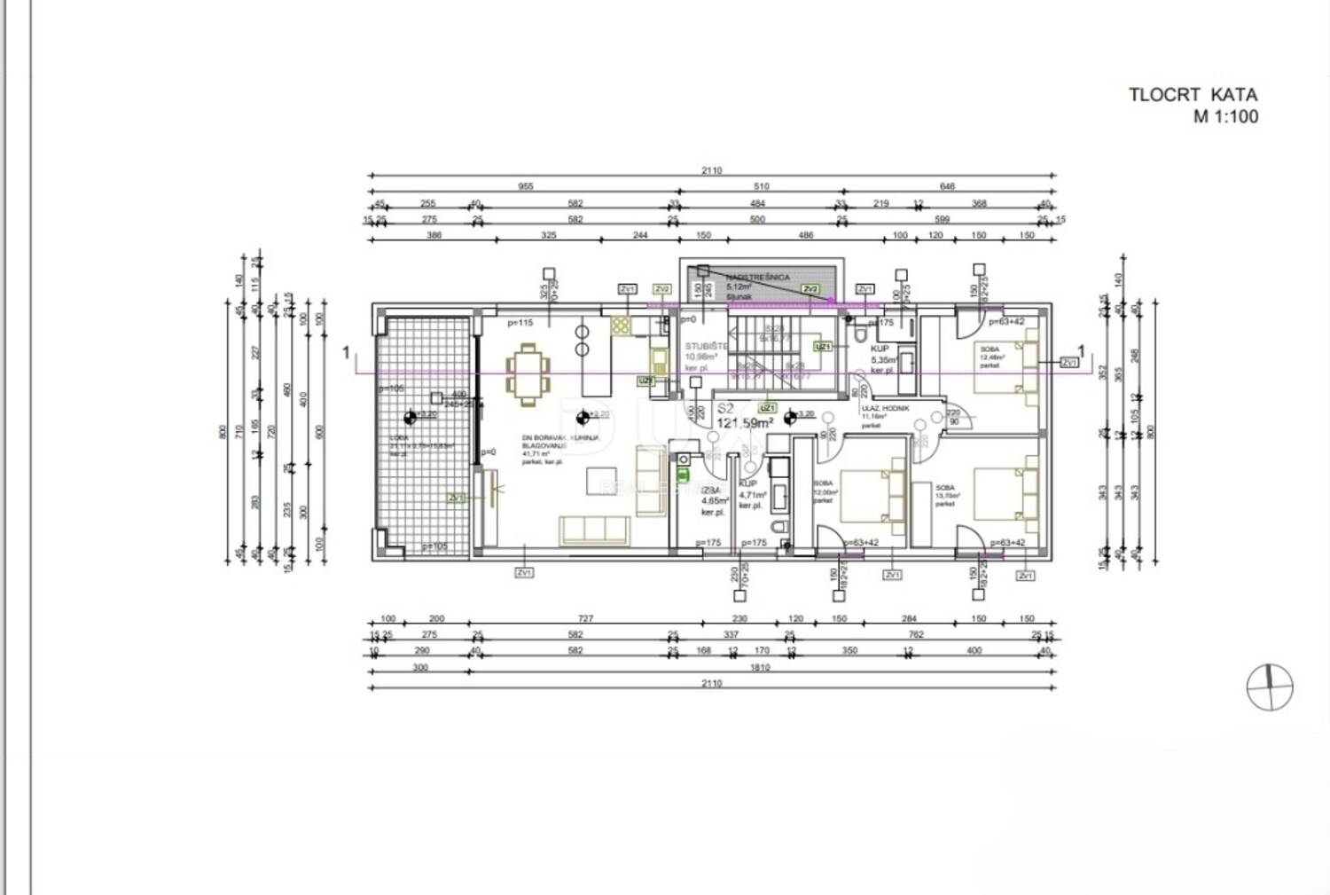 Prodaje se četverosoban stan površine 122 m², obracunski 126m², nalazi se na prvom katu stambene zgrade bez lifta.