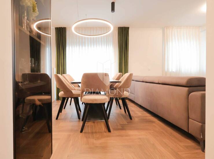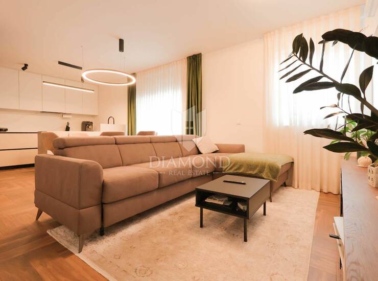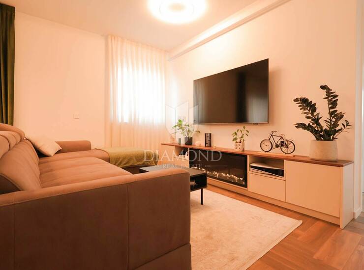 Interijer je izveden u modernom i elegantnom stilu, s naglaskom na svjetlinu, funkcionalnost i mirne tonove koji stvaraju osjećaj doma.