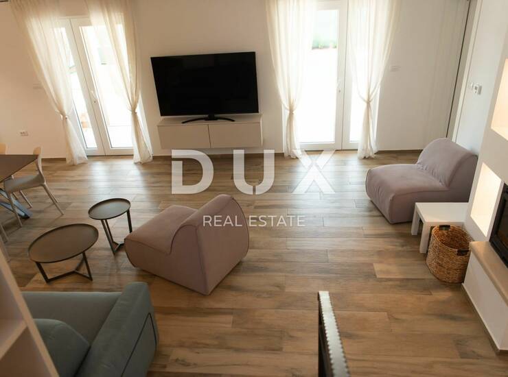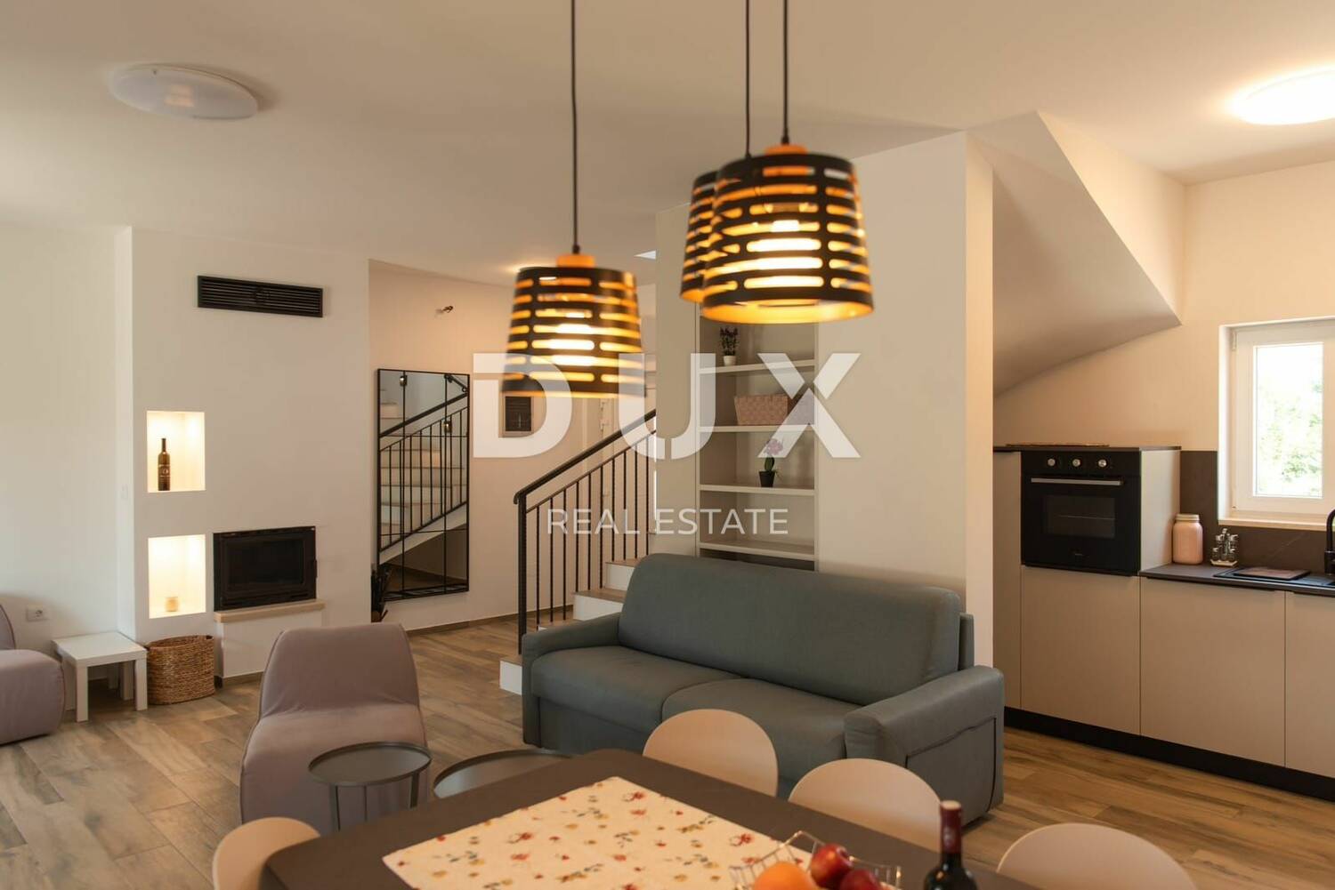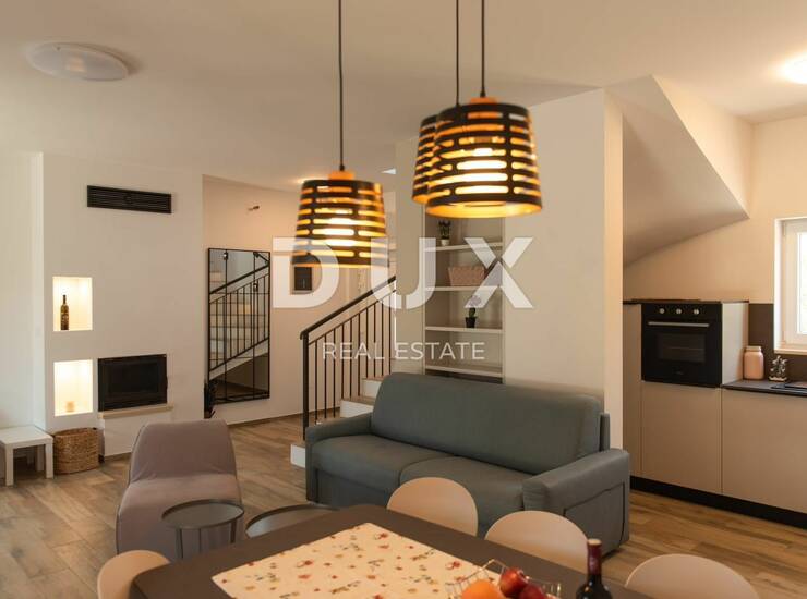 Upravo na Velom Vrhu, smjestila se ova prekrasna obiteljska kuća. Izgrađena je 2023. godine te je ukupna stambena površina 150m2 i proteže se kroz prizemlje i prvi kat. Prizemlje nekretnine sastoji se od predsoblja, dnevnog boravka s kuhinjom i blagovaonicom, spavaće sobe s vlastitom kupaonicom, gostinjske kupaonice, ostave te dvije terase. Unutarnjim stubištem dolazimo na prvi kat na kojem se nalaze predsoblje te dvije spavaće sobe s vlastitim kupaonicama.