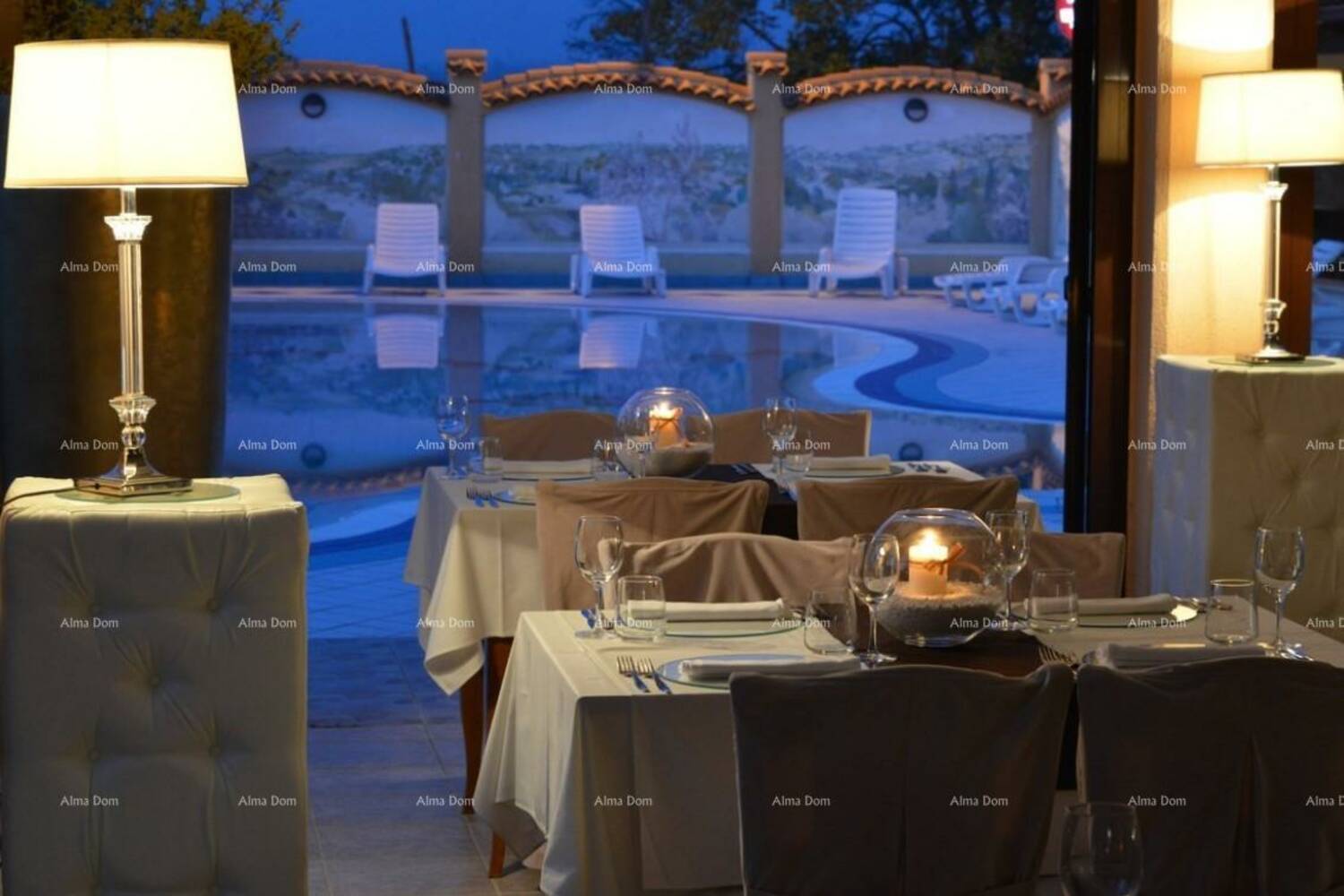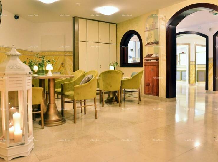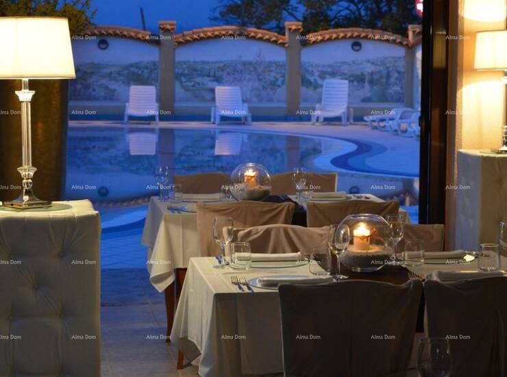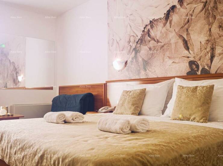 Hotel ukupne neto stambene površine 3735 m2, raspoređen na pet etaža, podrum, suteren, prizemlje, prvi i drugi kat, s kojeg se pruža veličanstven pogled. Brzi lift omogućuje nesmetano kretanje kroz sve etaže.
