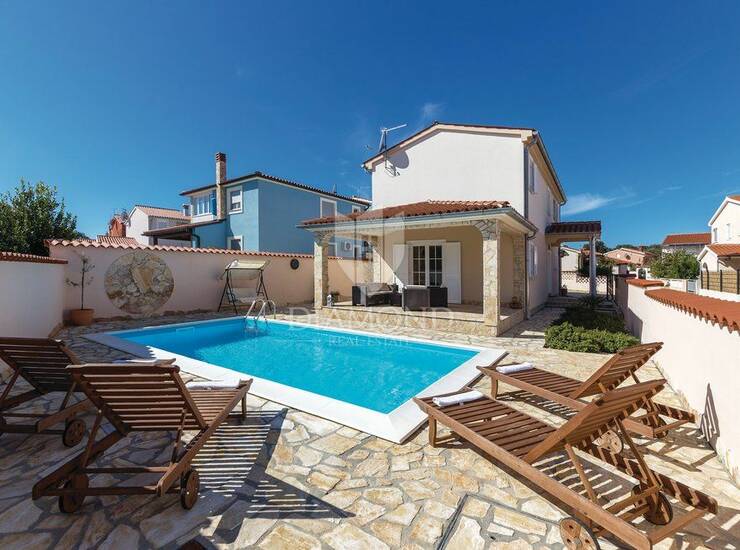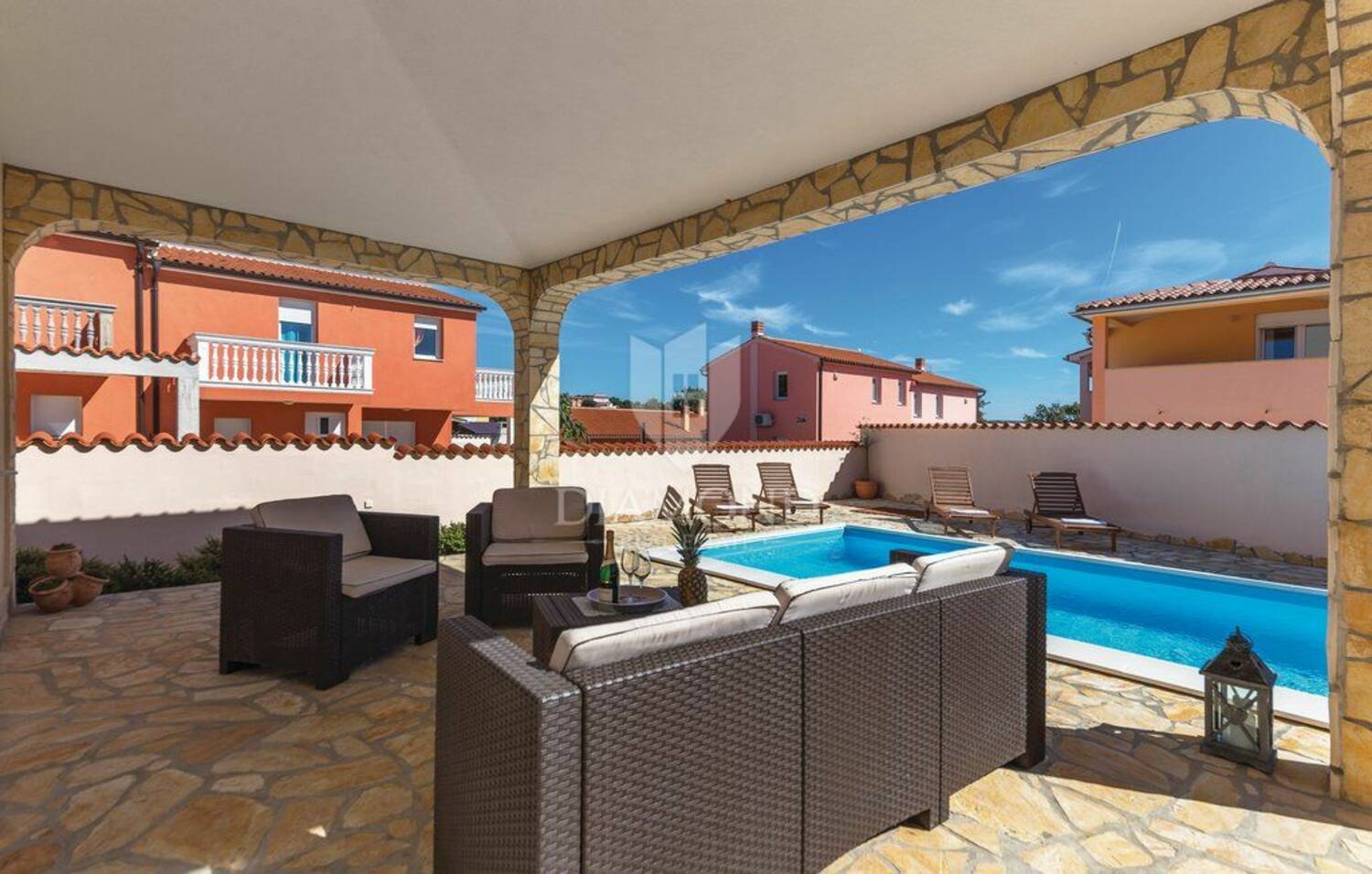 U malom i mirnom turističkom mjestu, smještenom između dvaju istarskih dragulja, Rovinja i Pule, nalazi se ova prekrasna kuća za odmor s bazenom.