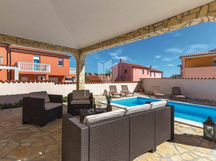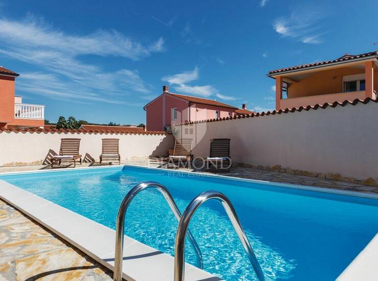 Kuća je udaljena svega 900 metara od mora i smještena je na uređenoj parceli od 396 m² koja pruža potpunu privatnost zahvaljujući ograđenom dvorištu. Izgrađena je 2012. godine, a tri godine kasnije dodan je bazen te je od tada u uspješnoj turističkoj renti ostvarujući stabilan prihod. Ukupna površina kuće iznosi 134,75 m² i raspoređena je na dvije etaže. U prizemlju se nalazi prostrani dnevni boravak povezan s kuhinjom i blagovaonicom, kupaonica te velika terasa idealna za ljetna druženja, dok se na katu nalaze tri spavaće sobe i još jedna kupaonica.