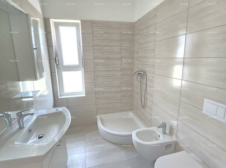 U predivnoj Fažani, na samo 100 metara od centra i 200 metara od mora, smjestio se ovaj prostrani stan od 99 m² na prvom katu novogradnje.