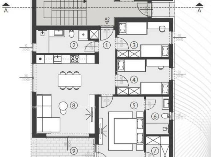Stan A2, površine 81,83 m2, nalazi se u prizemlju zgrade s 3 etaže.