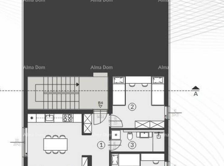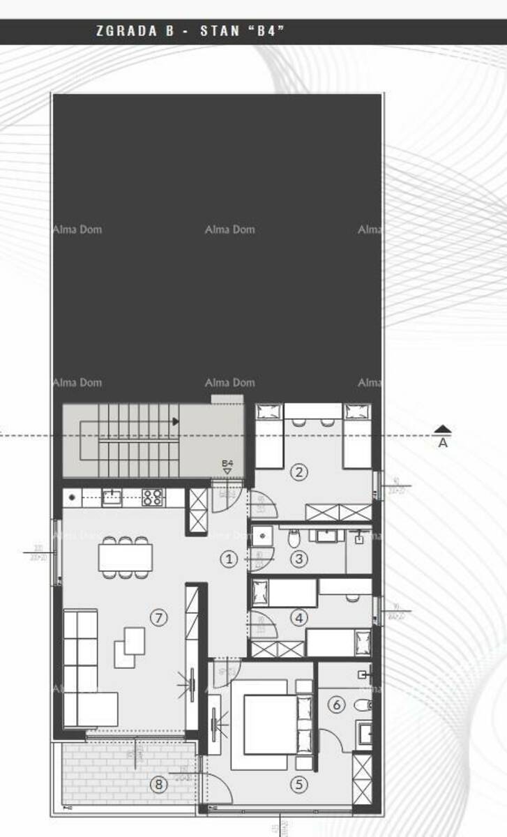 Stan B4 nalazi se na prvom katu zgrade s 3 etaže.