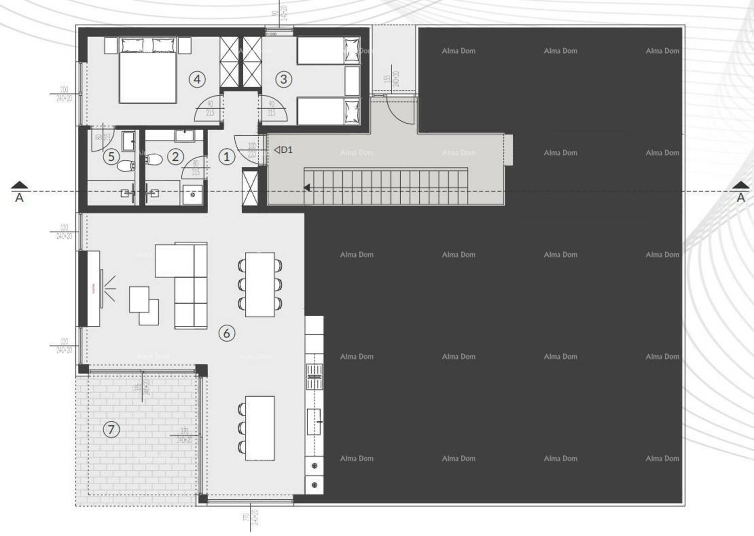 Stan D1, površine 91,55 m2, nalazi se u prizemlju zgrade C s 3 etaže.