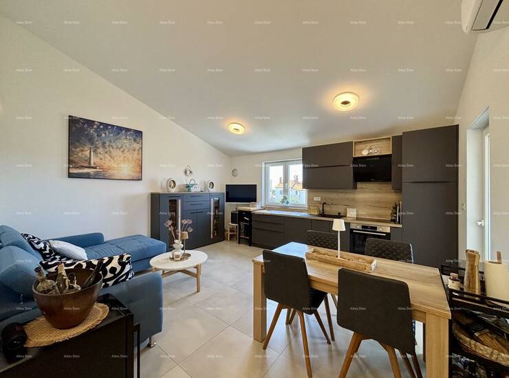 Pažljivo osmišljen novi stan, namijenjen vlastitom životu, nalazi se na 2. katu male stambene zgrade u zelenoj zoni blizu mora. Mirna okolica s razvijenom infrastrukturom i čistim zrakom.