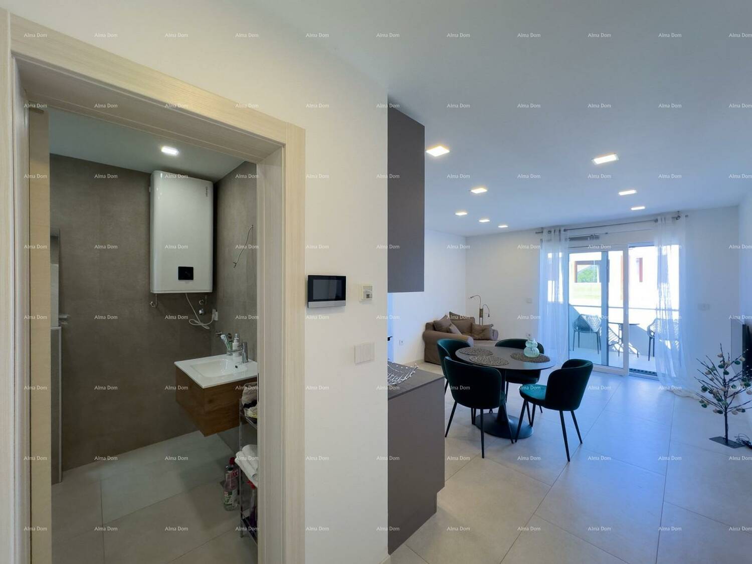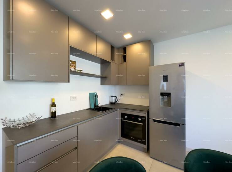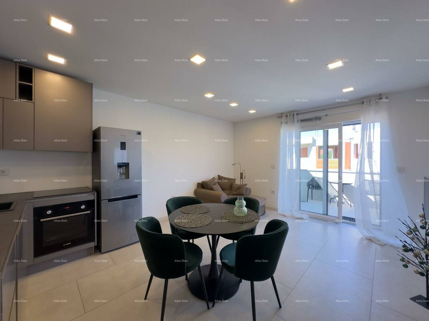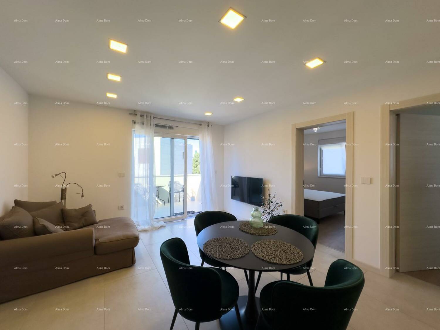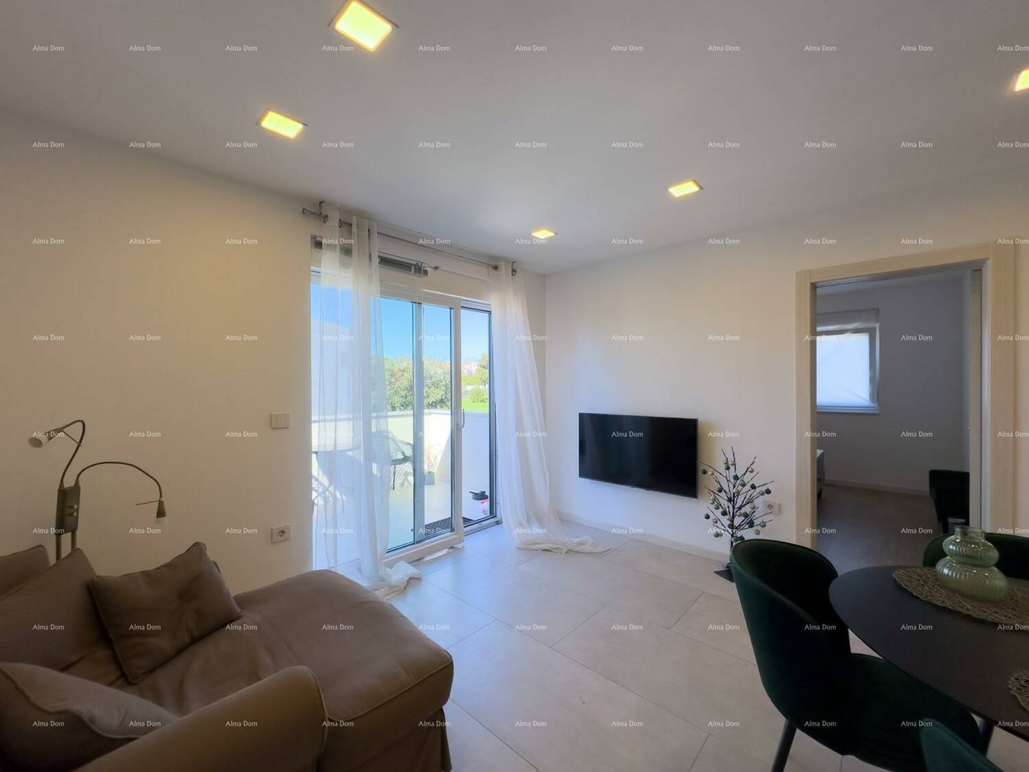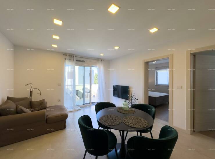 Prodaje se moderan i potpuno namješten stan u Štinjanu, Pula, smješten u kvalitetnoj novogradnji u mirnom i uređenom okruženju.