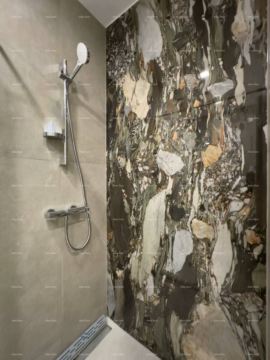 Velike staklene površine omogućuju obilje prirodnog svjetla, a visoki stropovi dodatno naglašavaju osjećaj prostranosti i luksuza. Korišteni su visokokvalitetni materijali i suvremena oprema, čineći ovaj stan idealnim domom za obitelj, par ili kao investiciju za turistički najam.